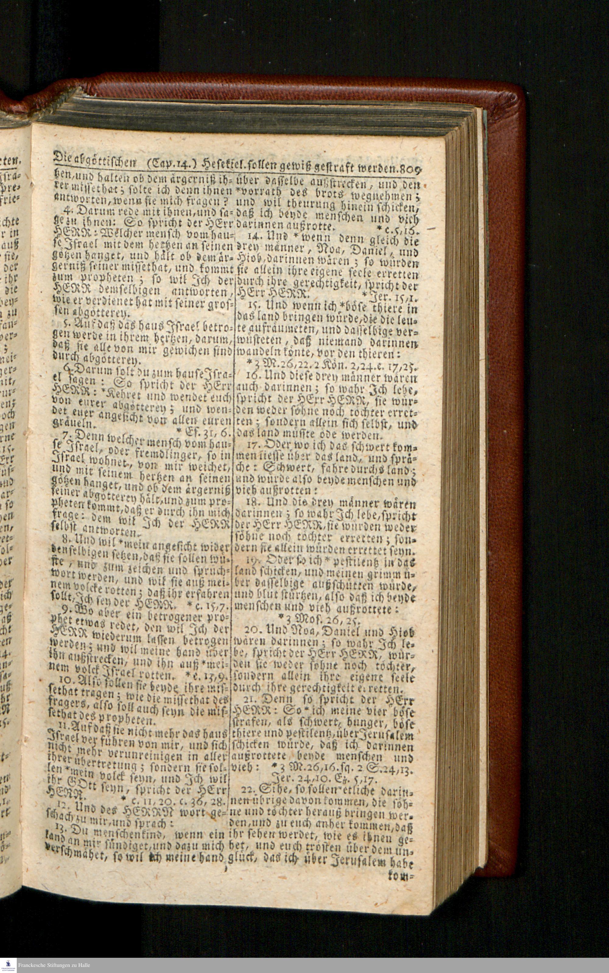 Biblia, Das ist: Die gantze Heil. Schrift Altes und Neues Testaments / Nach der Teutschen Ubersetzung D. Martin Luthers; Mit iedes Capitels kurtzen Summarien/ und nöthigsten Parallelen; Mit Fleiß übersehen, Und gegen einige/ sonderlich erstere/ Editiones des sel. Mannes gehalten, auch an unterschiedlichen Orten nach denselben eingerichtet, und von vielen in den bisherigen Exemplarien hin und wieder eingeschlichenen druckfehlern gesaubert. Nebst einer Vorrede Hn. Baron Carl Hildebrands v. Canstein.