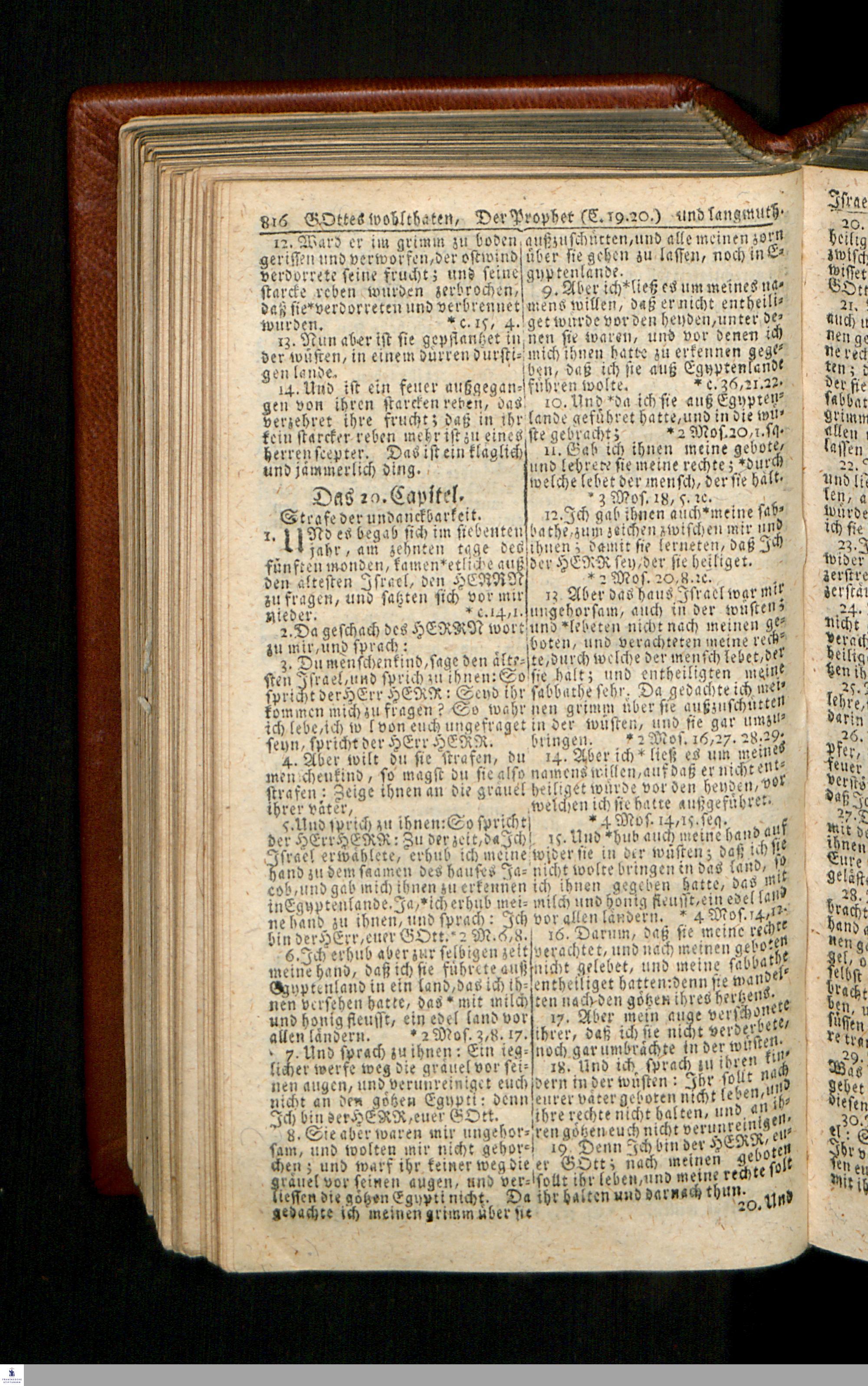 Biblia, Das ist: Die gantze Heil. Schrift Altes und Neues Testaments / Nach der Teutschen Ubersetzung D. Martin Luthers; Mit iedes Capitels kurtzen Summarien/ und nöthigsten Parallelen; Mit Fleiß übersehen, Und gegen einige/ sonderlich erstere/ Editiones des sel. Mannes gehalten, auch an unterschiedlichen Orten nach denselben eingerichtet, und von vielen in den bisherigen Exemplarien hin und wieder eingeschlichenen druckfehlern gesaubert. Nebst einer Vorrede Hn. Baron Carl Hildebrands v. Canstein.