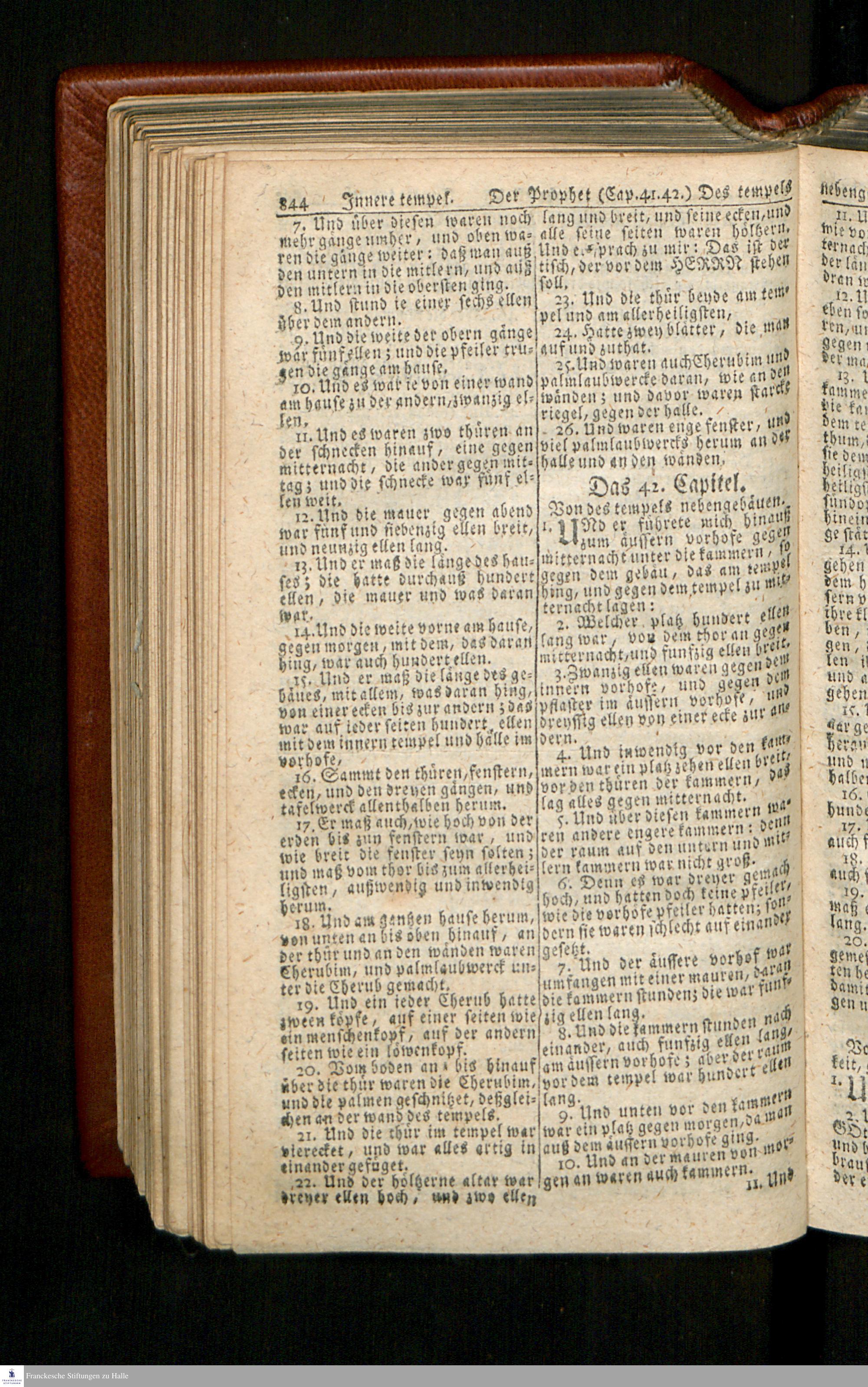 Biblia, Das ist: Die gantze Heil. Schrift Altes und Neues Testaments / Nach der Teutschen Ubersetzung D. Martin Luthers; Mit iedes Capitels kurtzen Summarien/ und nöthigsten Parallelen; Mit Fleiß übersehen, Und gegen einige/ sonderlich erstere/ Editiones des sel. Mannes gehalten, auch an unterschiedlichen Orten nach denselben eingerichtet, und von vielen in den bisherigen Exemplarien hin und wieder eingeschlichenen druckfehlern gesaubert. Nebst einer Vorrede Hn. Baron Carl Hildebrands v. Canstein.