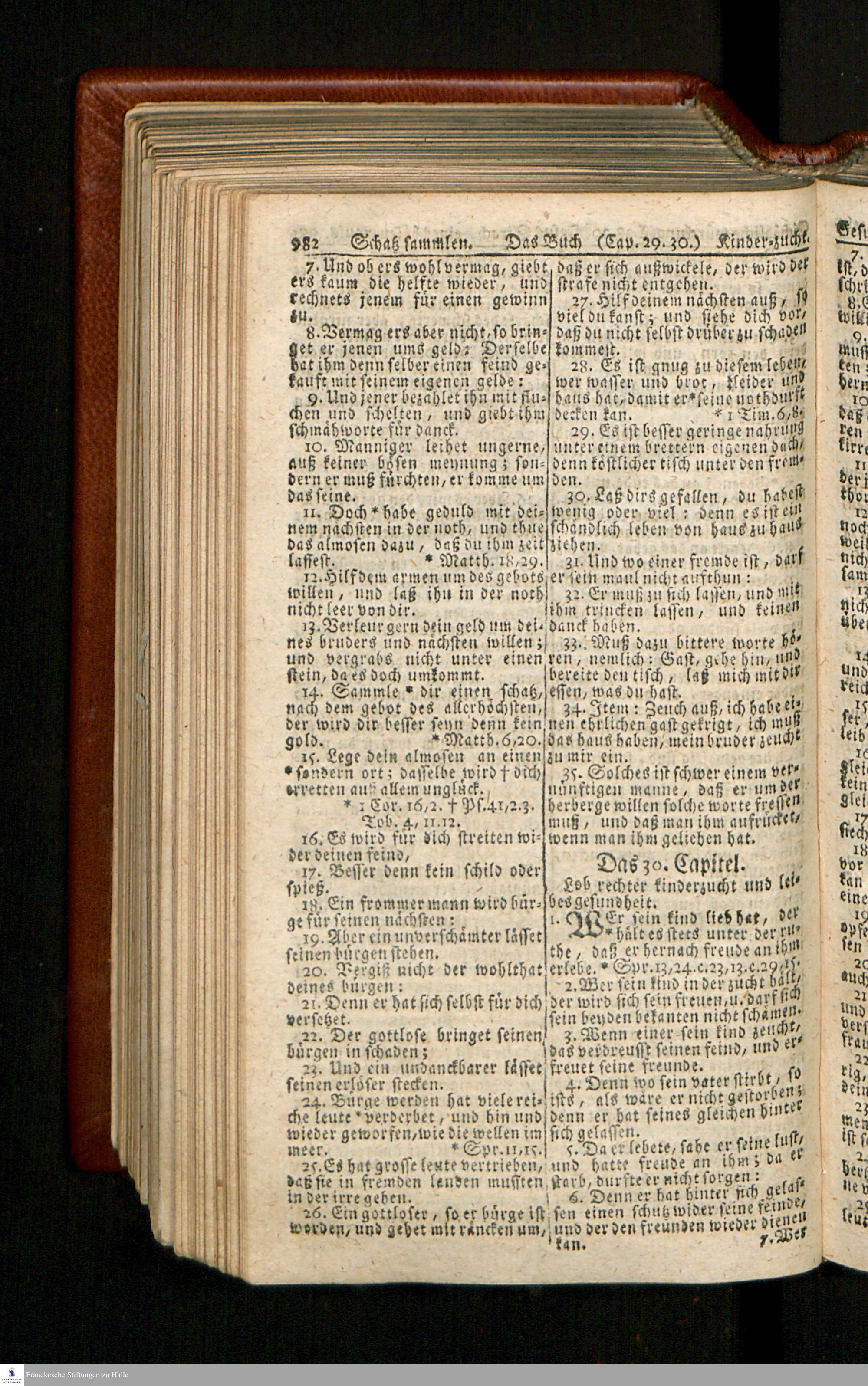 Biblia, Das ist: Die gantze Heil. Schrift Altes und Neues Testaments / Nach der Teutschen Ubersetzung D. Martin Luthers; Mit iedes Capitels kurtzen Summarien/ und nöthigsten Parallelen; Mit Fleiß übersehen, Und gegen einige/ sonderlich erstere/ Editiones des sel. Mannes gehalten, auch an unterschiedlichen Orten nach denselben eingerichtet, und von vielen in den bisherigen Exemplarien hin und wieder eingeschlichenen druckfehlern gesaubert. Nebst einer Vorrede Hn. Baron Carl Hildebrands v. Canstein.