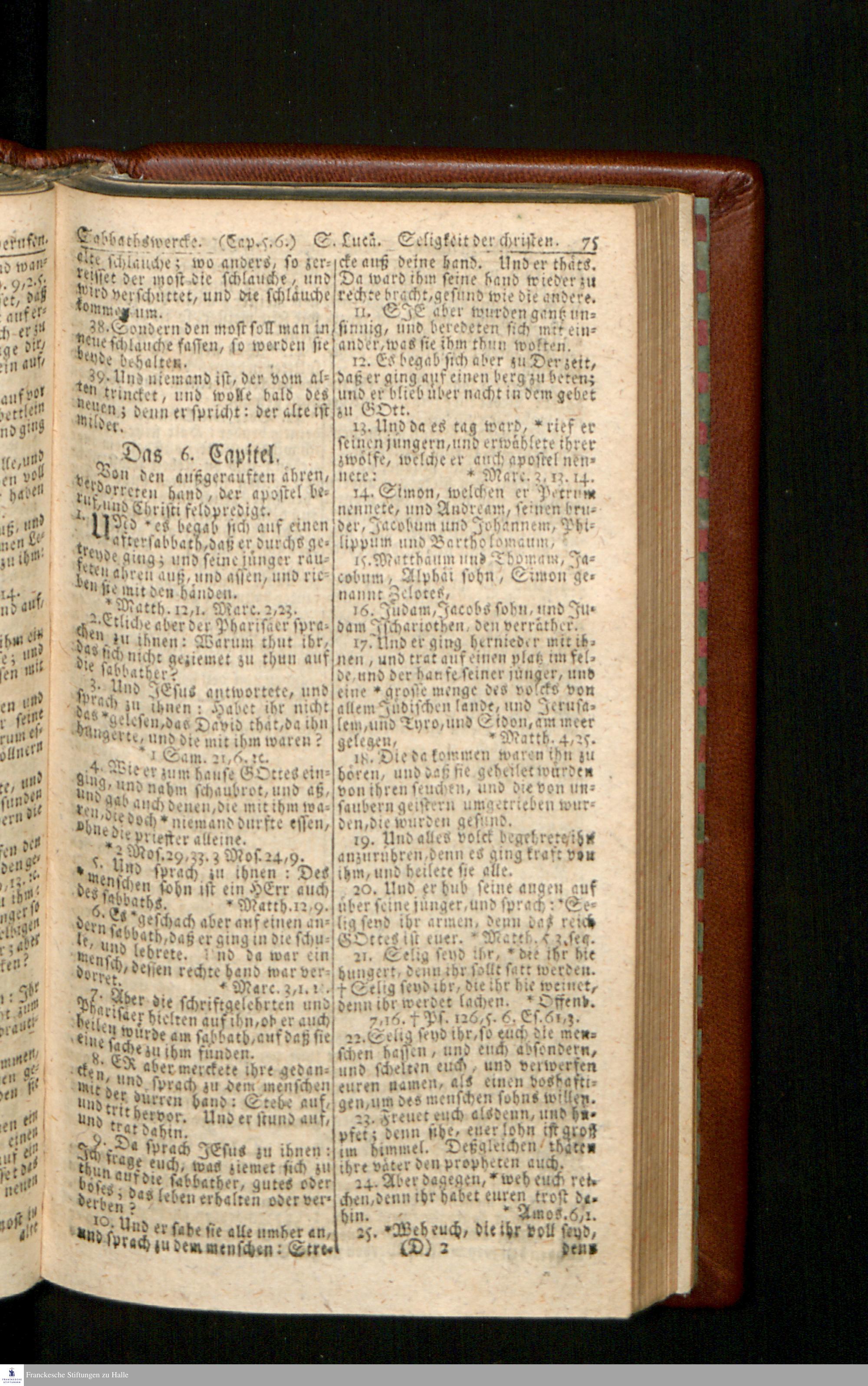 Biblia, Das ist: Die gantze Heil. Schrift Altes und Neues Testaments / Nach der Teutschen Ubersetzung D. Martin Luthers; Mit iedes Capitels kurtzen Summarien/ und nöthigsten Parallelen; Mit Fleiß übersehen, Und gegen einige/ sonderlich erstere/ Editiones des sel. Mannes gehalten, auch an unterschiedlichen Orten nach denselben eingerichtet, und von vielen in den bisherigen Exemplarien hin und wieder eingeschlichenen druckfehlern gesaubert. Nebst einer Vorrede Hn. Baron Carl Hildebrands v. Canstein.