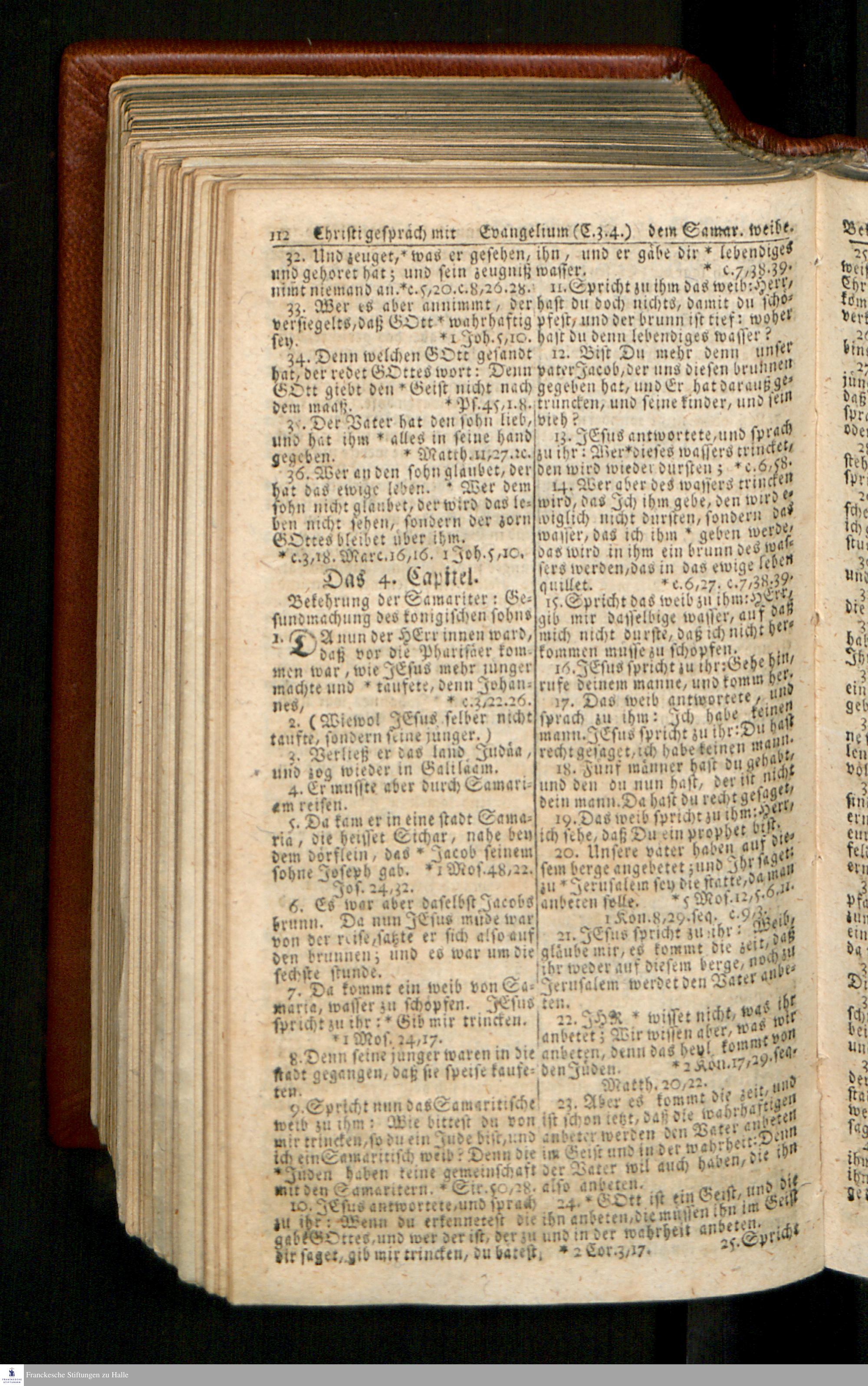 Biblia, Das ist: Die gantze Heil. Schrift Altes und Neues Testaments / Nach der Teutschen Ubersetzung D. Martin Luthers; Mit iedes Capitels kurtzen Summarien/ und nöthigsten Parallelen; Mit Fleiß übersehen, Und gegen einige/ sonderlich erstere/ Editiones des sel. Mannes gehalten, auch an unterschiedlichen Orten nach denselben eingerichtet, und von vielen in den bisherigen Exemplarien hin und wieder eingeschlichenen druckfehlern gesaubert. Nebst einer Vorrede Hn. Baron Carl Hildebrands v. Canstein.