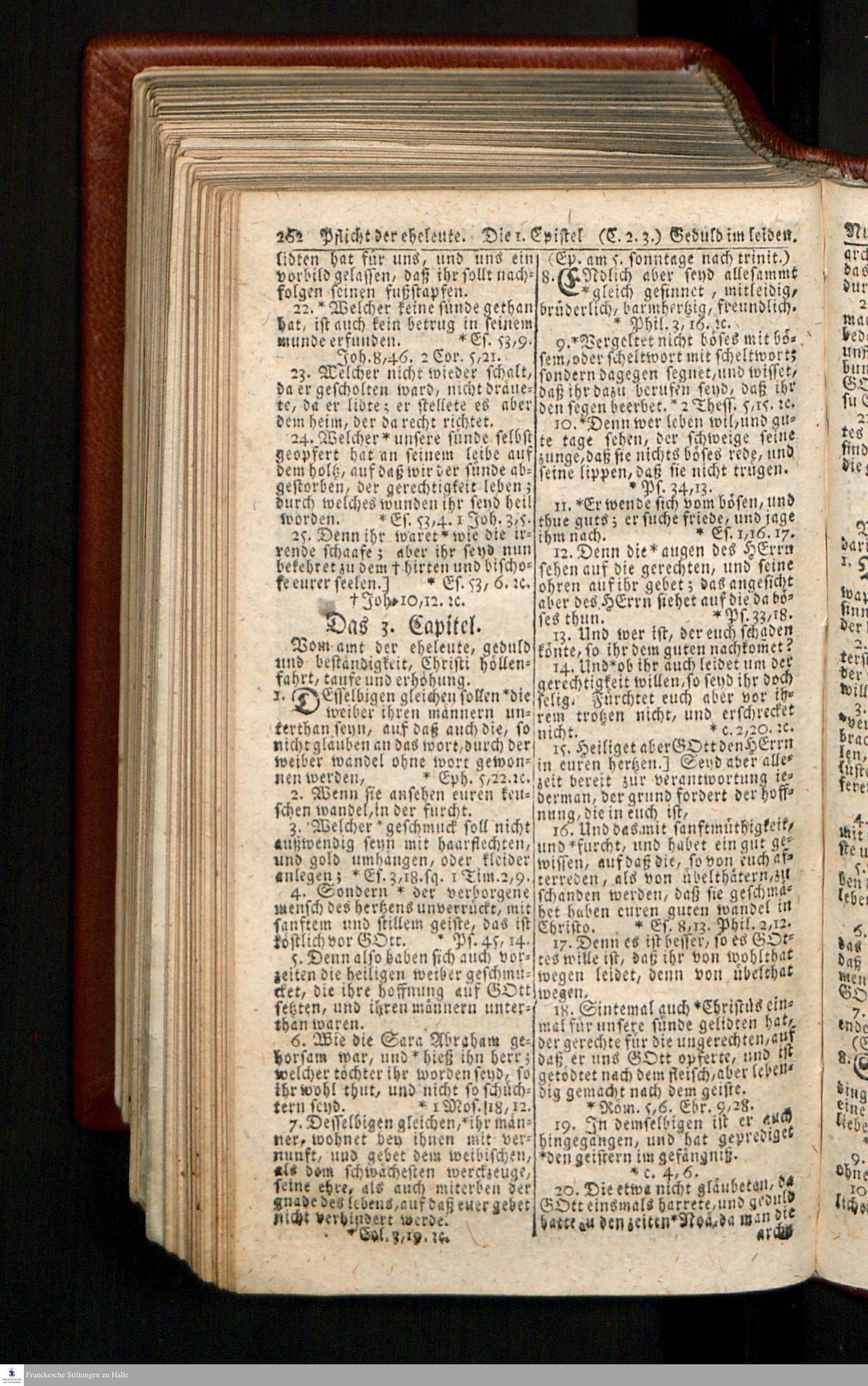 Biblia, Das ist: Die gantze Heil. Schrift Altes und Neues Testaments / Nach der Teutschen Ubersetzung D. Martin Luthers; Mit iedes Capitels kurtzen Summarien/ und nöthigsten Parallelen; Mit Fleiß übersehen, Und gegen einige/ sonderlich erstere/ Editiones des sel. Mannes gehalten, auch an unterschiedlichen Orten nach denselben eingerichtet, und von vielen in den bisherigen Exemplarien hin und wieder eingeschlichenen druckfehlern gesaubert. Nebst einer Vorrede Hn. Baron Carl Hildebrands v. Canstein.