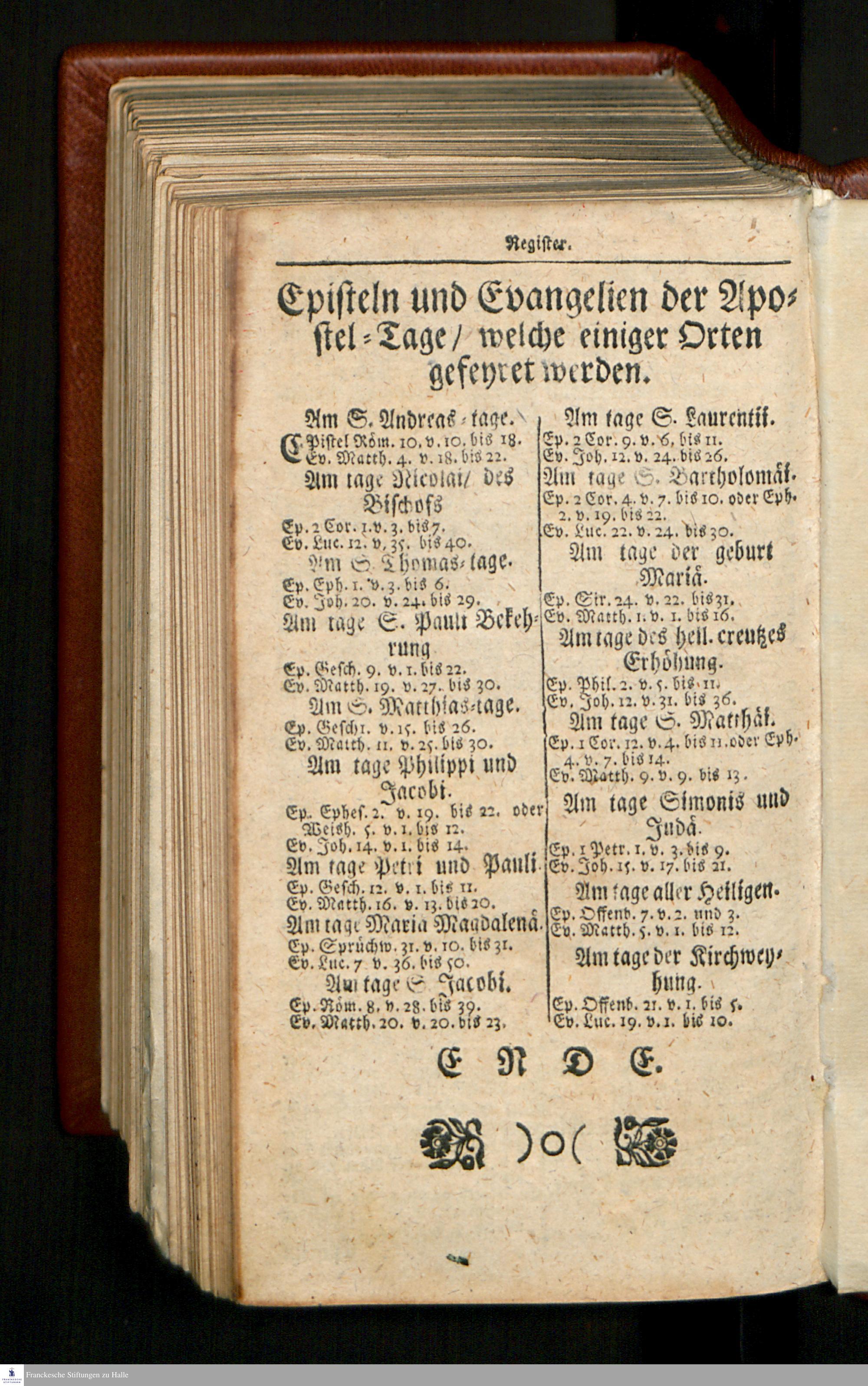 Biblia, Das ist: Die gantze Heil. Schrift Altes und Neues Testaments / Nach der Teutschen Ubersetzung D. Martin Luthers; Mit iedes Capitels kurtzen Summarien/ und nöthigsten Parallelen; Mit Fleiß übersehen, Und gegen einige/ sonderlich erstere/ Editiones des sel. Mannes gehalten, auch an unterschiedlichen Orten nach denselben eingerichtet, und von vielen in den bisherigen Exemplarien hin und wieder eingeschlichenen druckfehlern gesaubert. Nebst einer Vorrede Hn. Baron Carl Hildebrands v. Canstein.