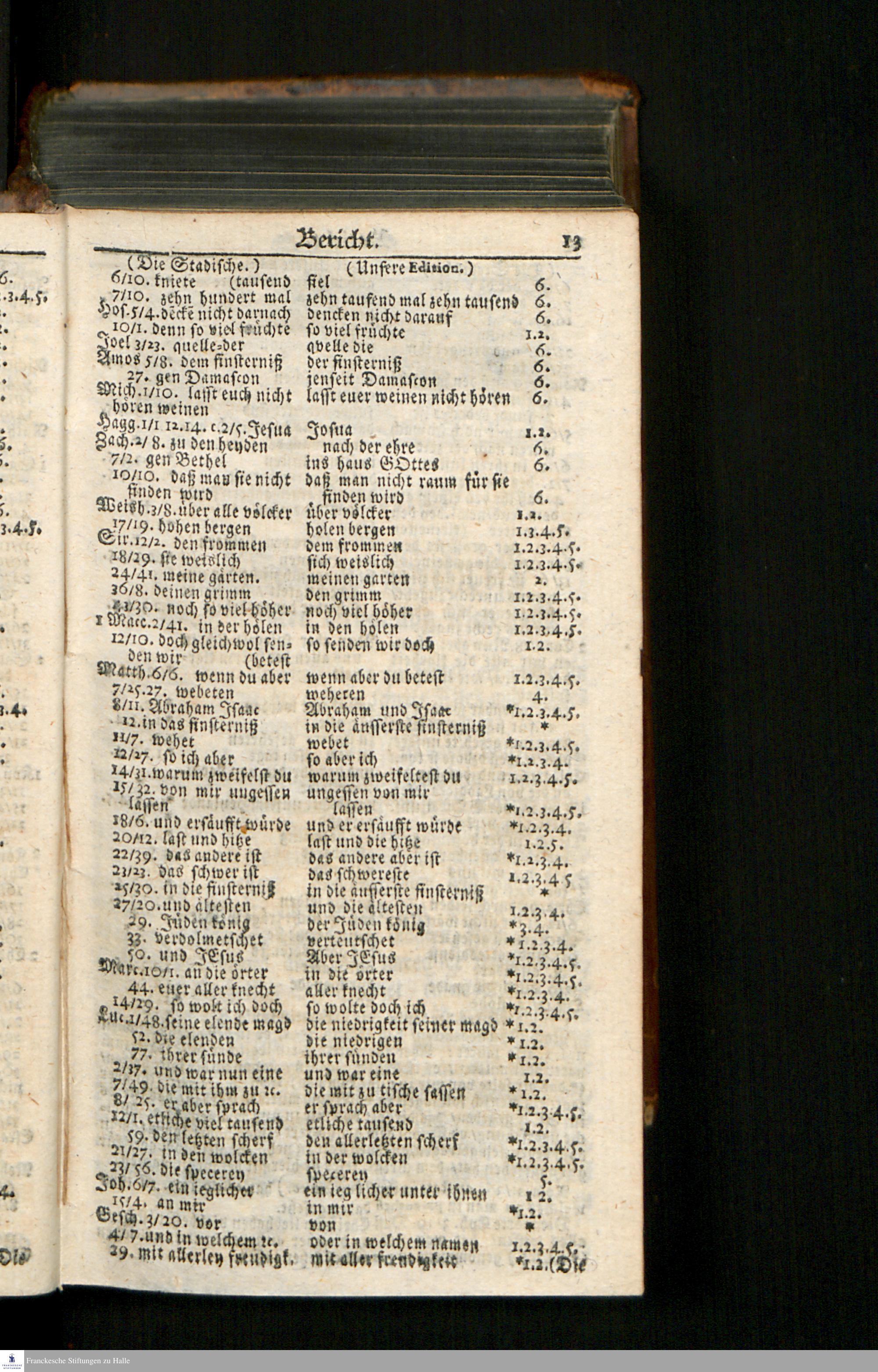 Biblia, Das ist: Die gantze Heil. Schrift Altes und Neues Testaments / Nach der Teutschen Ubersetzung D. Martin Luthers; Mit iedes Capitels kurtzen Summarien/ und nöthigsten Parallelen; Mit Fleiß übersehen, Und gegen einige/ sonderlich erstere/ Editiones des sel. Mannes gehalten, auch an unterschiedlichen Orten nach denselben eingerichtet, und von vielen in den bisherigen Exemplarien hin und wieder eingeschlichenen druckfehlern gesaubert. Nebst einer Vorrede Hn. Baron Carl Hildebrands v. Canstein.