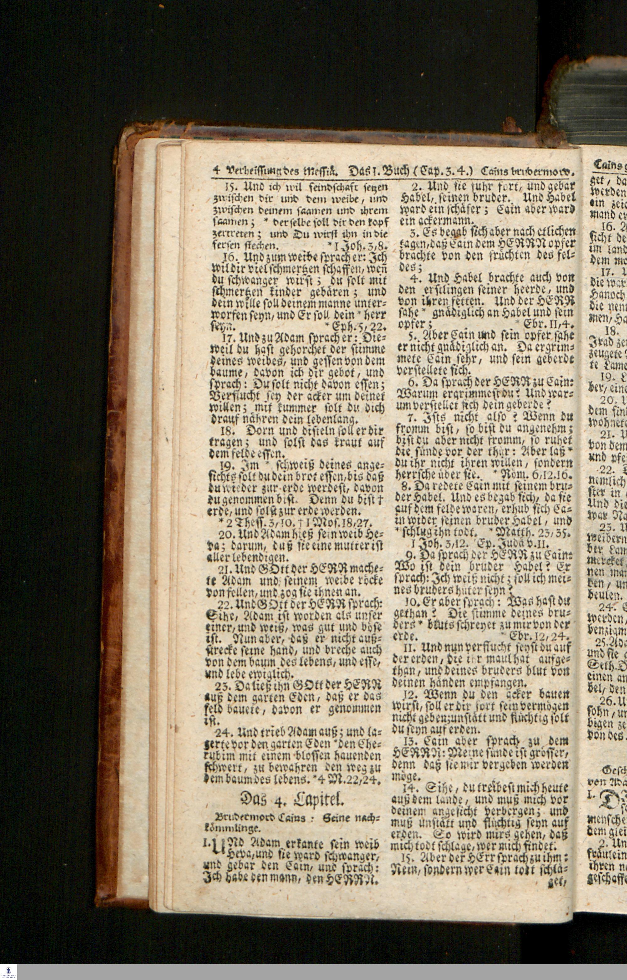 Biblia, Das ist: Die gantze Heil. Schrift Altes und Neues Testaments / Nach der Teutschen Ubersetzung D. Martin Luthers; Mit iedes Capitels kurtzen Summarien/ und nöthigsten Parallelen; Mit Fleiß übersehen, Und gegen einige/ sonderlich erstere/ Editiones des sel. Mannes gehalten, auch an unterschiedlichen Orten nach denselben eingerichtet, und von vielen in den bisherigen Exemplarien hin und wieder eingeschlichenen druckfehlern gesaubert. Nebst einer Vorrede Hn. Baron Carl Hildebrands v. Canstein.