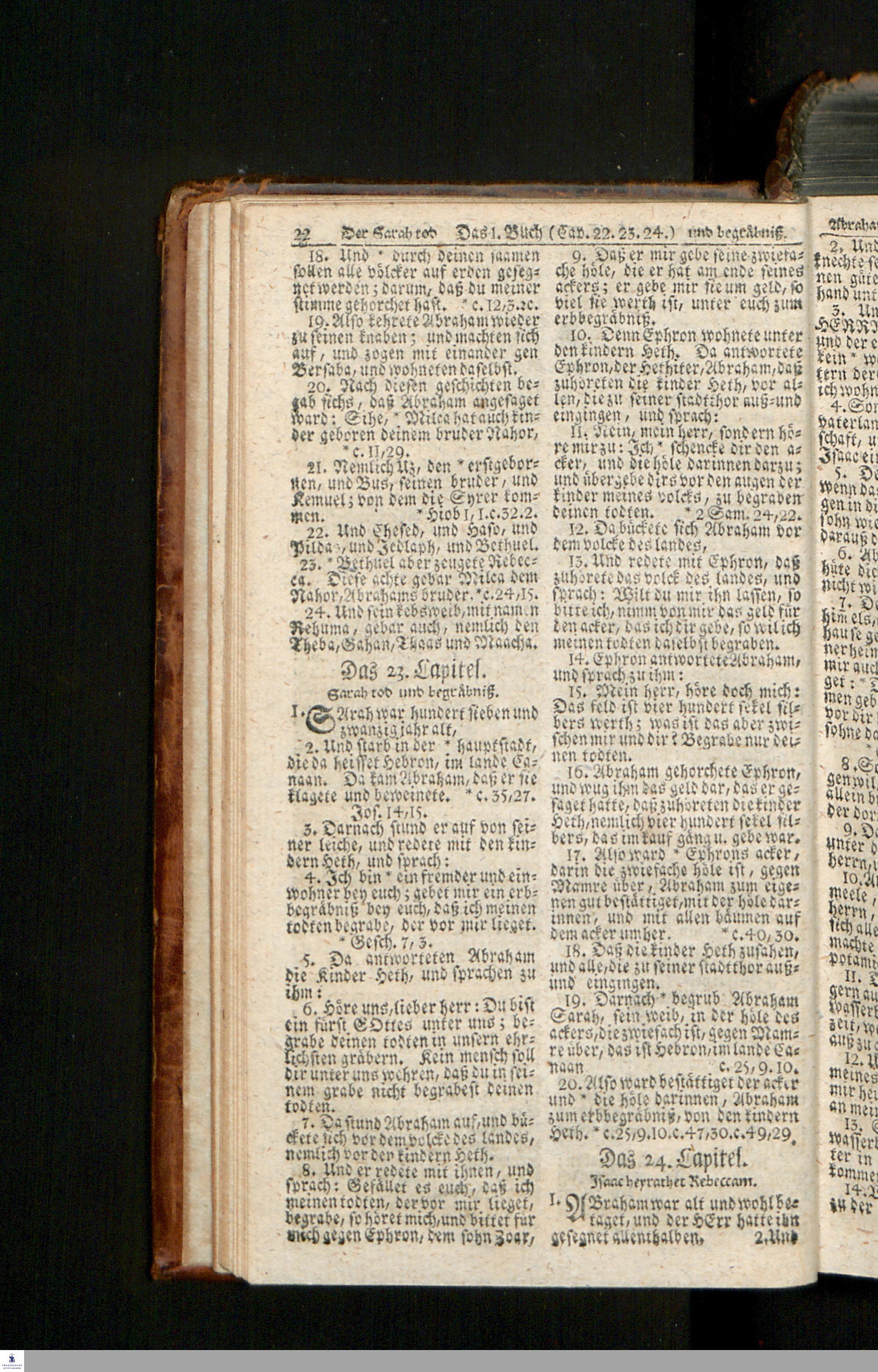 Biblia, Das ist: Die gantze Heil. Schrift Altes und Neues Testaments / Nach der Teutschen Ubersetzung D. Martin Luthers; Mit iedes Capitels kurtzen Summarien/ und nöthigsten Parallelen; Mit Fleiß übersehen, Und gegen einige/ sonderlich erstere/ Editiones des sel. Mannes gehalten, auch an unterschiedlichen Orten nach denselben eingerichtet, und von vielen in den bisherigen Exemplarien hin und wieder eingeschlichenen druckfehlern gesaubert. Nebst einer Vorrede Hn. Baron Carl Hildebrands v. Canstein.