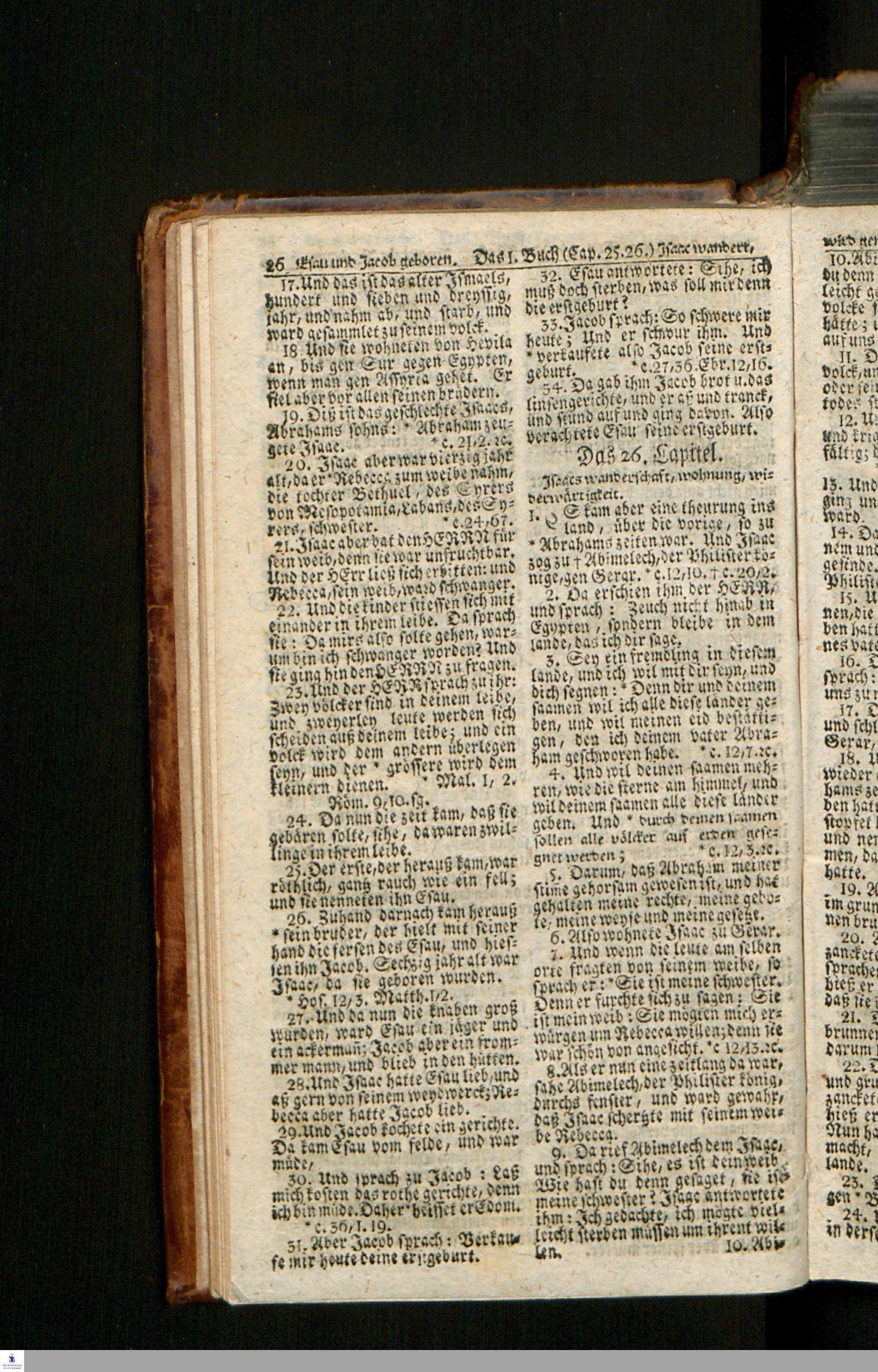 Biblia, Das ist: Die gantze Heil. Schrift Altes und Neues Testaments / Nach der Teutschen Ubersetzung D. Martin Luthers; Mit iedes Capitels kurtzen Summarien/ und nöthigsten Parallelen; Mit Fleiß übersehen, Und gegen einige/ sonderlich erstere/ Editiones des sel. Mannes gehalten, auch an unterschiedlichen Orten nach denselben eingerichtet, und von vielen in den bisherigen Exemplarien hin und wieder eingeschlichenen druckfehlern gesaubert. Nebst einer Vorrede Hn. Baron Carl Hildebrands v. Canstein.