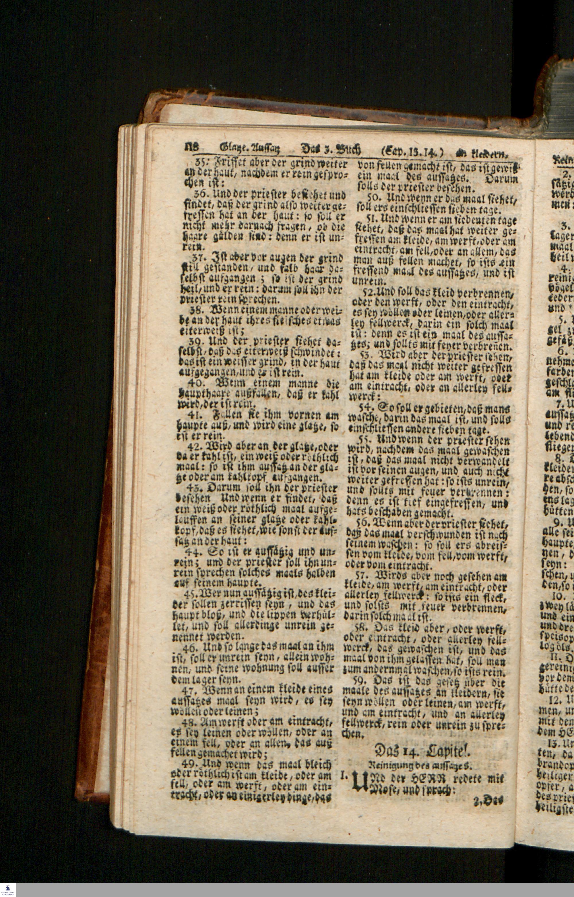 Biblia, Das ist: Die gantze Heil. Schrift Altes und Neues Testaments / Nach der Teutschen Ubersetzung D. Martin Luthers; Mit iedes Capitels kurtzen Summarien/ und nöthigsten Parallelen; Mit Fleiß übersehen, Und gegen einige/ sonderlich erstere/ Editiones des sel. Mannes gehalten, auch an unterschiedlichen Orten nach denselben eingerichtet, und von vielen in den bisherigen Exemplarien hin und wieder eingeschlichenen druckfehlern gesaubert. Nebst einer Vorrede Hn. Baron Carl Hildebrands v. Canstein.