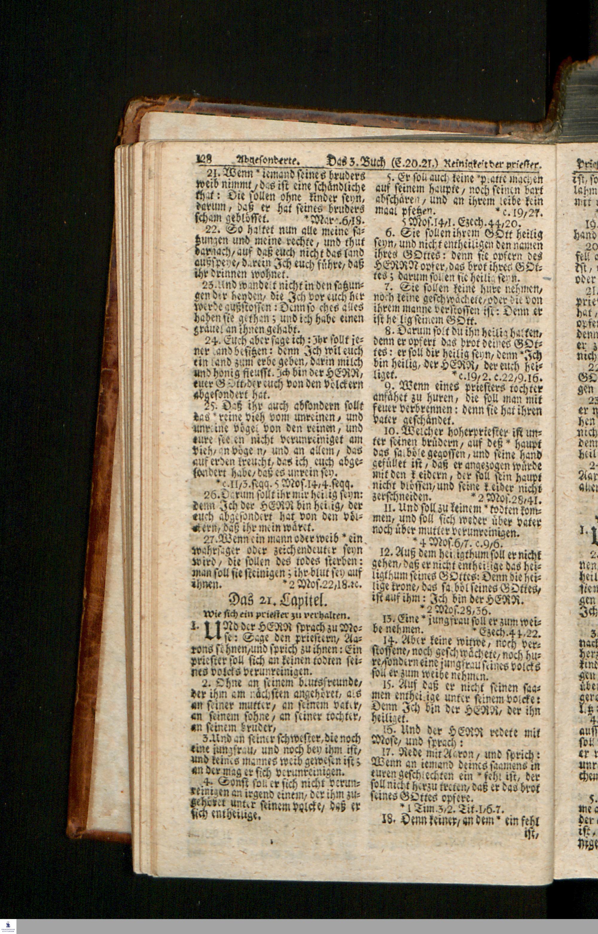 Biblia, Das ist: Die gantze Heil. Schrift Altes und Neues Testaments / Nach der Teutschen Ubersetzung D. Martin Luthers; Mit iedes Capitels kurtzen Summarien/ und nöthigsten Parallelen; Mit Fleiß übersehen, Und gegen einige/ sonderlich erstere/ Editiones des sel. Mannes gehalten, auch an unterschiedlichen Orten nach denselben eingerichtet, und von vielen in den bisherigen Exemplarien hin und wieder eingeschlichenen druckfehlern gesaubert. Nebst einer Vorrede Hn. Baron Carl Hildebrands v. Canstein.