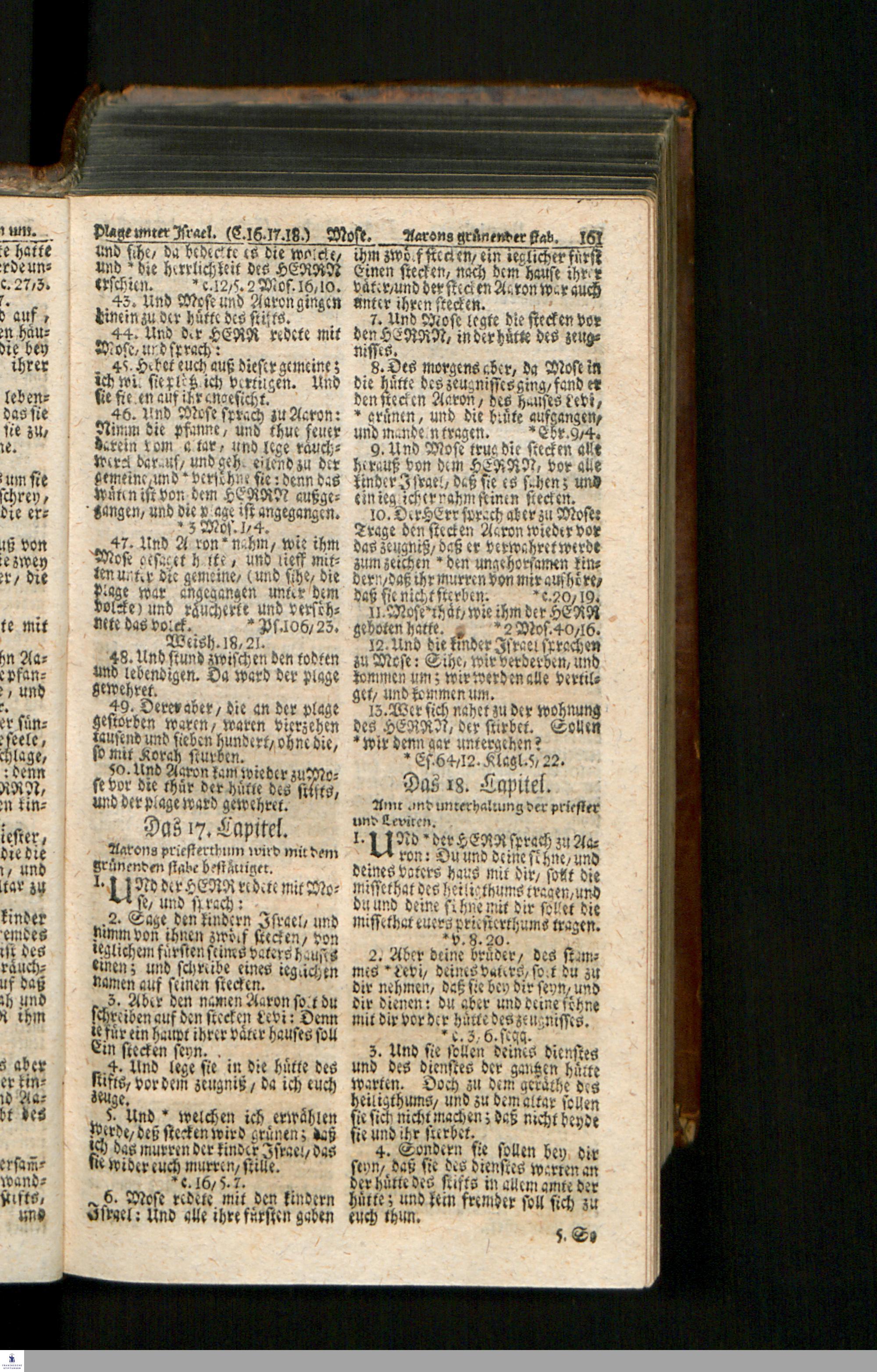 Biblia, Das ist: Die gantze Heil. Schrift Altes und Neues Testaments / Nach der Teutschen Ubersetzung D. Martin Luthers; Mit iedes Capitels kurtzen Summarien/ und nöthigsten Parallelen; Mit Fleiß übersehen, Und gegen einige/ sonderlich erstere/ Editiones des sel. Mannes gehalten, auch an unterschiedlichen Orten nach denselben eingerichtet, und von vielen in den bisherigen Exemplarien hin und wieder eingeschlichenen druckfehlern gesaubert. Nebst einer Vorrede Hn. Baron Carl Hildebrands v. Canstein.