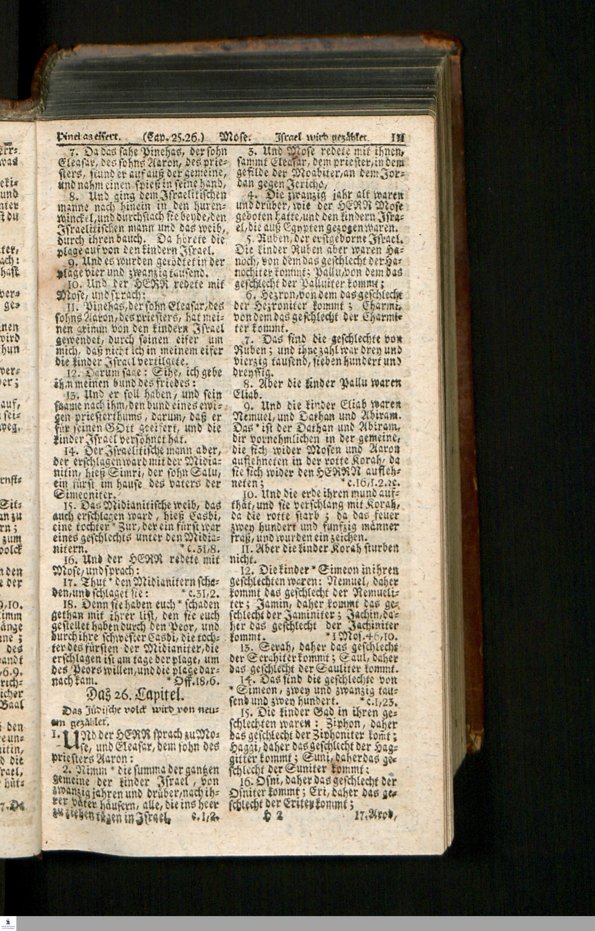 Biblia, Das ist: Die gantze Heil. Schrift Altes und Neues Testaments / Nach der Teutschen Ubersetzung D. Martin Luthers; Mit iedes Capitels kurtzen Summarien/ und nöthigsten Parallelen; Mit Fleiß übersehen, Und gegen einige/ sonderlich erstere/ Editiones des sel. Mannes gehalten, auch an unterschiedlichen Orten nach denselben eingerichtet, und von vielen in den bisherigen Exemplarien hin und wieder eingeschlichenen druckfehlern gesaubert. Nebst einer Vorrede Hn. Baron Carl Hildebrands v. Canstein.