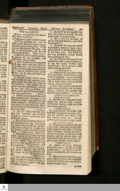 Biblia, Das ist: Die gantze Heil. Schrift Altes und Neues Testaments / Nach der Teutschen Ubersetzung D. Martin Luthers; Mit iedes Capitels kurtzen Summarien/ und nöthigsten Parallelen; Mit Fleiß übersehen, Und gegen einige/ sonderlich erstere/ Editiones des sel. Mannes gehalten, auch an unterschiedlichen Orten nach denselben eingerichtet, und von vielen in den bisherigen Exemplarien hin und wieder eingeschlichenen druckfehlern gesaubert. Nebst einer Vorrede Hn. Baron Carl Hildebrands v. Canstein.