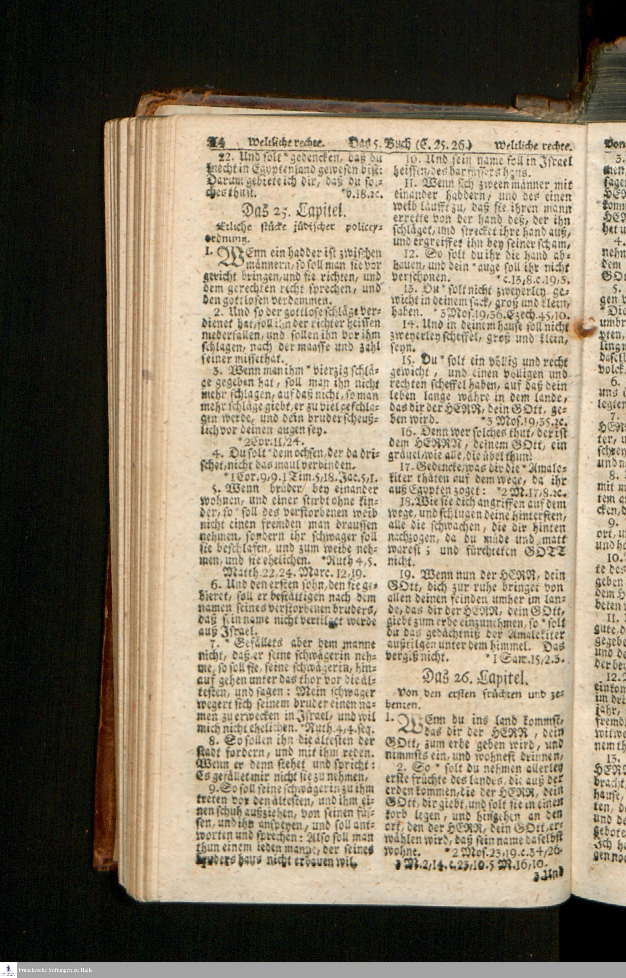 Biblia, Das ist: Die gantze Heil. Schrift Altes und Neues Testaments / Nach der Teutschen Ubersetzung D. Martin Luthers; Mit iedes Capitels kurtzen Summarien/ und nöthigsten Parallelen; Mit Fleiß übersehen, Und gegen einige/ sonderlich erstere/ Editiones des sel. Mannes gehalten, auch an unterschiedlichen Orten nach denselben eingerichtet, und von vielen in den bisherigen Exemplarien hin und wieder eingeschlichenen druckfehlern gesaubert. Nebst einer Vorrede Hn. Baron Carl Hildebrands v. Canstein.