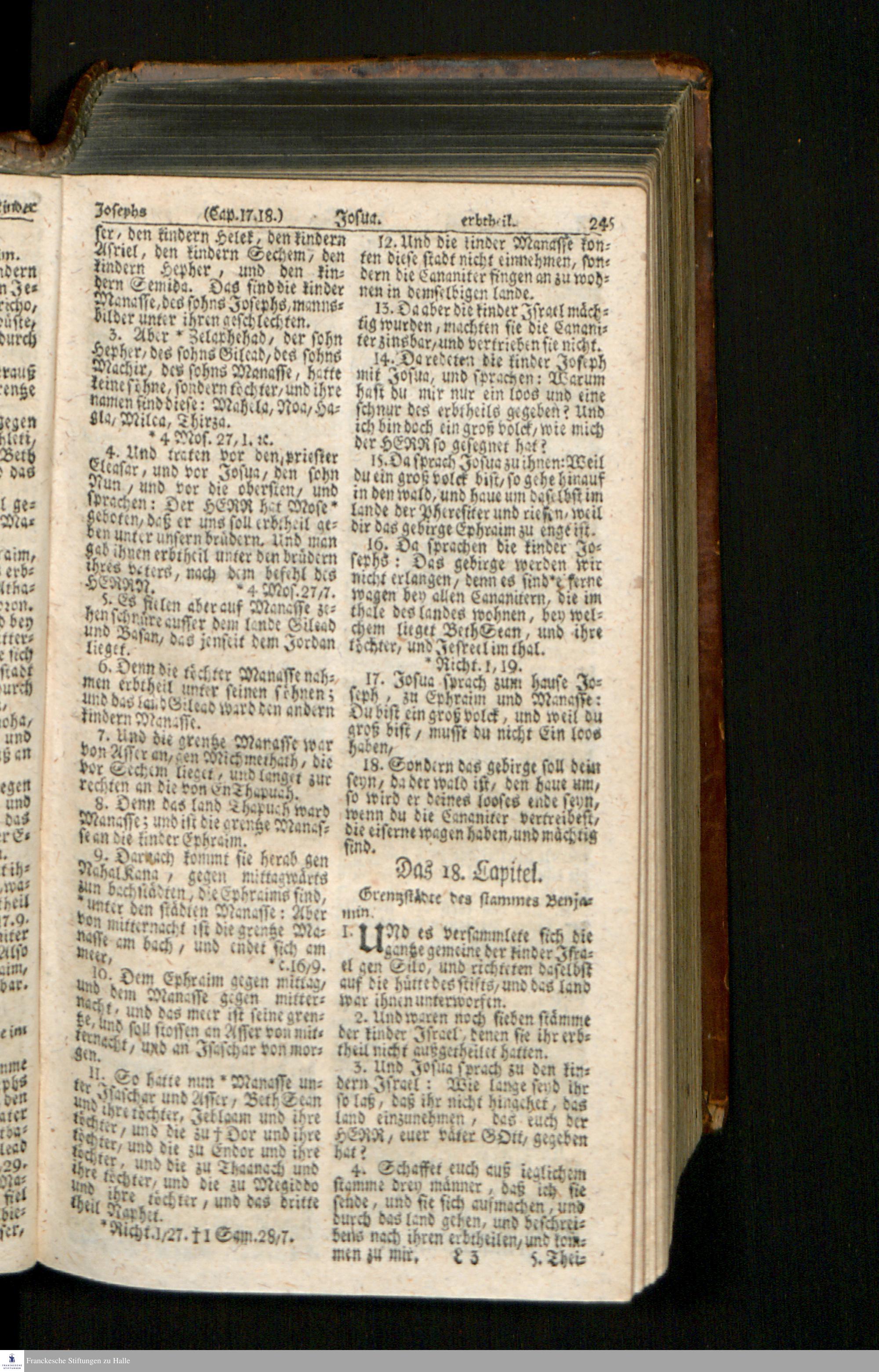Biblia, Das ist: Die gantze Heil. Schrift Altes und Neues Testaments / Nach der Teutschen Ubersetzung D. Martin Luthers; Mit iedes Capitels kurtzen Summarien/ und nöthigsten Parallelen; Mit Fleiß übersehen, Und gegen einige/ sonderlich erstere/ Editiones des sel. Mannes gehalten, auch an unterschiedlichen Orten nach denselben eingerichtet, und von vielen in den bisherigen Exemplarien hin und wieder eingeschlichenen druckfehlern gesaubert. Nebst einer Vorrede Hn. Baron Carl Hildebrands v. Canstein.