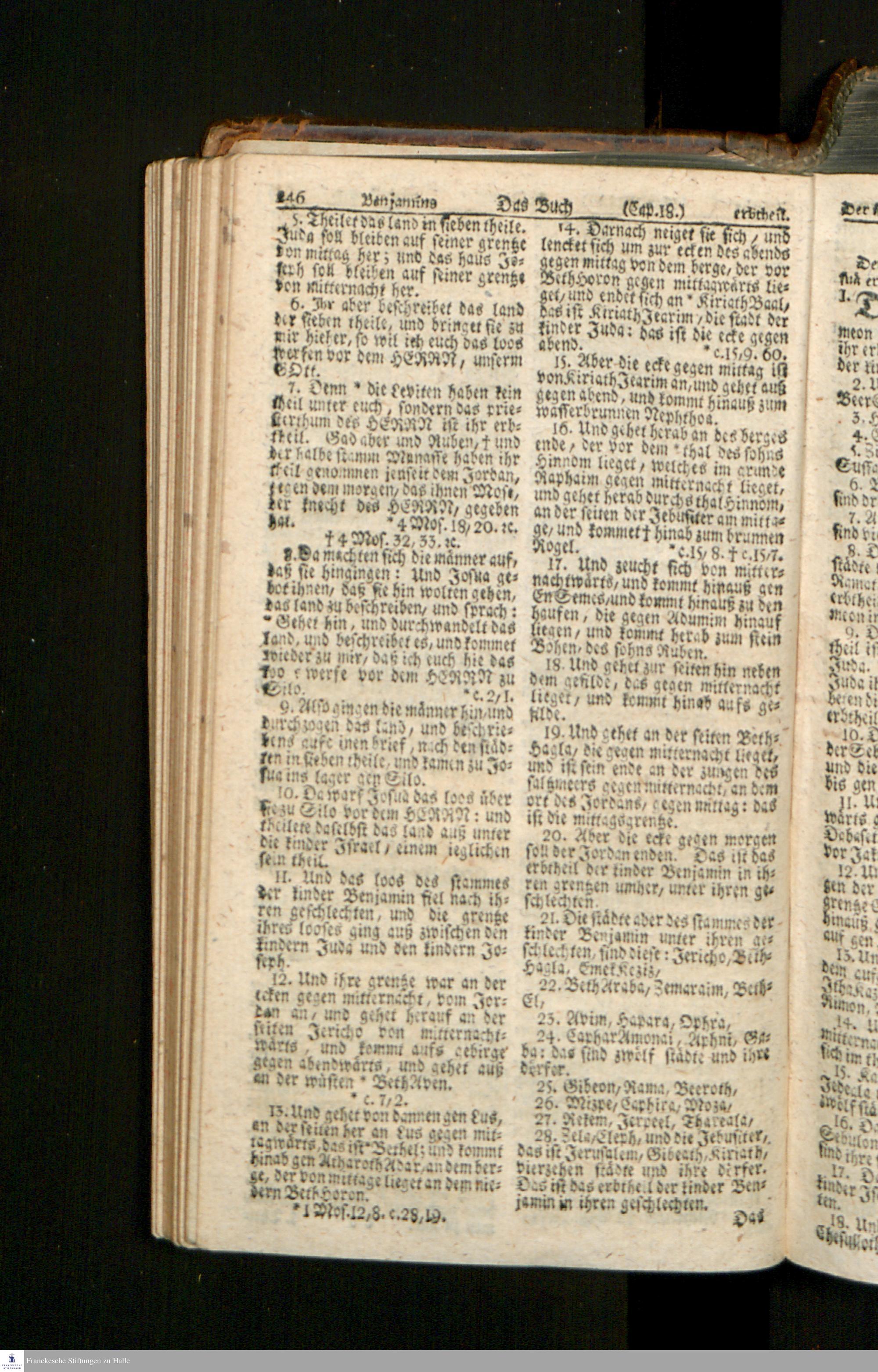 Biblia, Das ist: Die gantze Heil. Schrift Altes und Neues Testaments / Nach der Teutschen Ubersetzung D. Martin Luthers; Mit iedes Capitels kurtzen Summarien/ und nöthigsten Parallelen; Mit Fleiß übersehen, Und gegen einige/ sonderlich erstere/ Editiones des sel. Mannes gehalten, auch an unterschiedlichen Orten nach denselben eingerichtet, und von vielen in den bisherigen Exemplarien hin und wieder eingeschlichenen druckfehlern gesaubert. Nebst einer Vorrede Hn. Baron Carl Hildebrands v. Canstein.