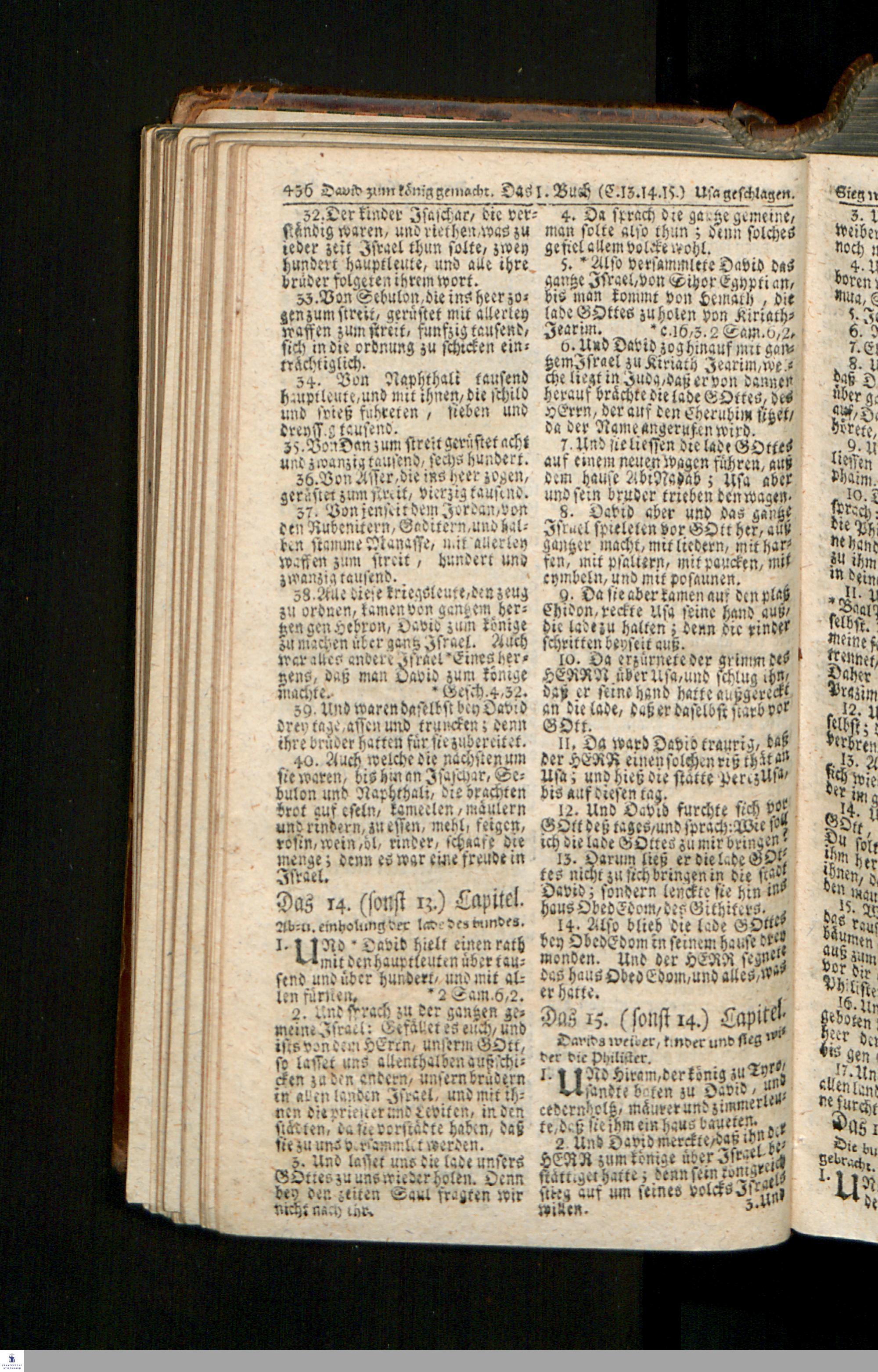 Biblia, Das ist: Die gantze Heil. Schrift Altes und Neues Testaments / Nach der Teutschen Ubersetzung D. Martin Luthers; Mit iedes Capitels kurtzen Summarien/ und nöthigsten Parallelen; Mit Fleiß übersehen, Und gegen einige/ sonderlich erstere/ Editiones des sel. Mannes gehalten, auch an unterschiedlichen Orten nach denselben eingerichtet, und von vielen in den bisherigen Exemplarien hin und wieder eingeschlichenen druckfehlern gesaubert. Nebst einer Vorrede Hn. Baron Carl Hildebrands v. Canstein.