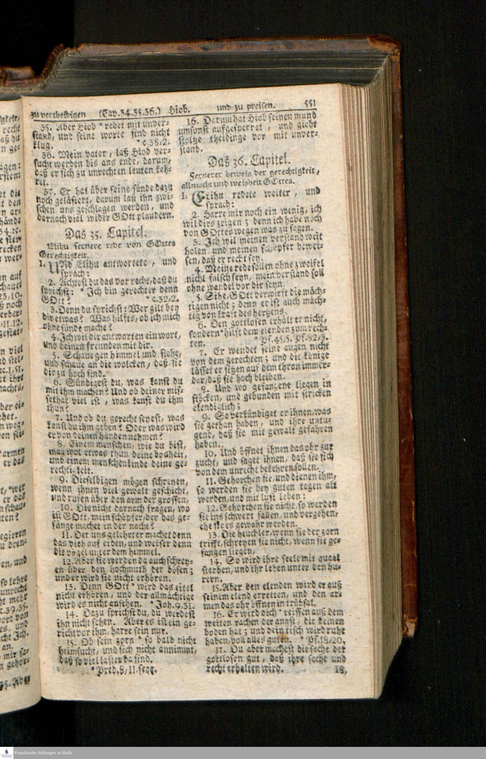 Biblia, Das ist: Die gantze Heil. Schrift Altes und Neues Testaments / Nach der Teutschen Ubersetzung D. Martin Luthers; Mit iedes Capitels kurtzen Summarien/ und nöthigsten Parallelen; Mit Fleiß übersehen, Und gegen einige/ sonderlich erstere/ Editiones des sel. Mannes gehalten, auch an unterschiedlichen Orten nach denselben eingerichtet, und von vielen in den bisherigen Exemplarien hin und wieder eingeschlichenen druckfehlern gesaubert. Nebst einer Vorrede Hn. Baron Carl Hildebrands v. Canstein.