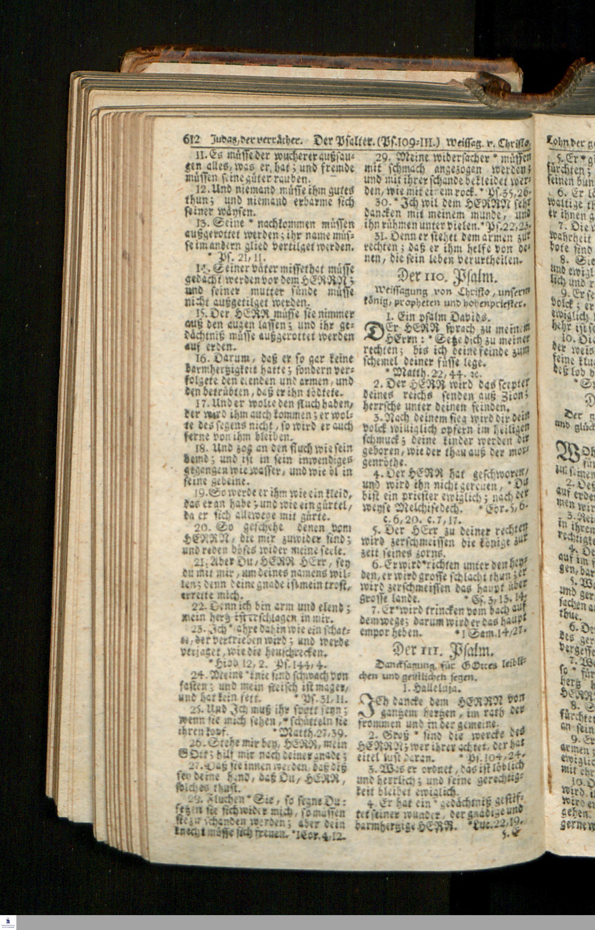 Biblia, Das ist: Die gantze Heil. Schrift Altes und Neues Testaments / Nach der Teutschen Ubersetzung D. Martin Luthers; Mit iedes Capitels kurtzen Summarien/ und nöthigsten Parallelen; Mit Fleiß übersehen, Und gegen einige/ sonderlich erstere/ Editiones des sel. Mannes gehalten, auch an unterschiedlichen Orten nach denselben eingerichtet, und von vielen in den bisherigen Exemplarien hin und wieder eingeschlichenen druckfehlern gesaubert. Nebst einer Vorrede Hn. Baron Carl Hildebrands v. Canstein.