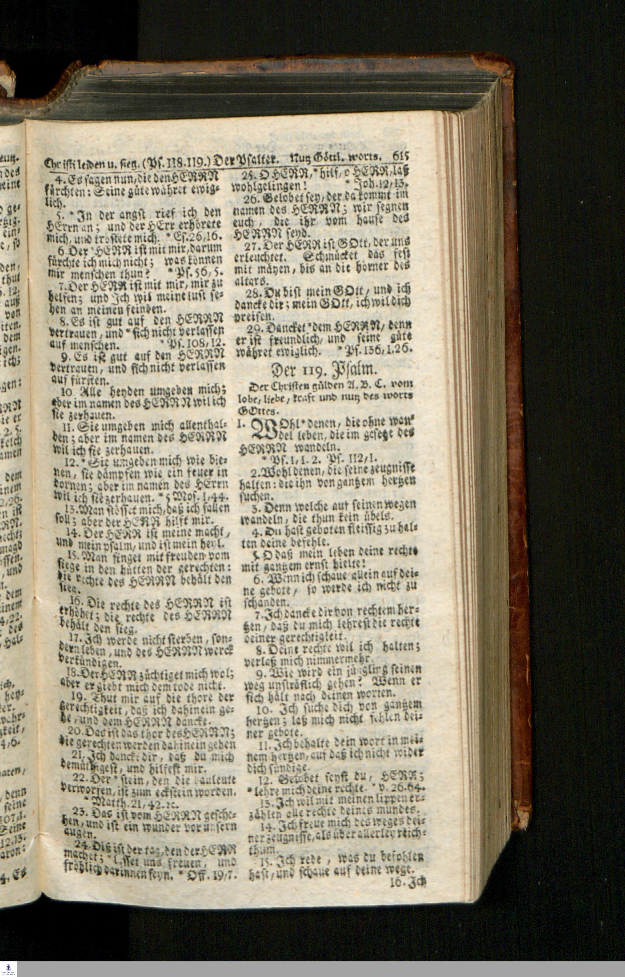 Biblia, Das ist: Die gantze Heil. Schrift Altes und Neues Testaments / Nach der Teutschen Ubersetzung D. Martin Luthers; Mit iedes Capitels kurtzen Summarien/ und nöthigsten Parallelen; Mit Fleiß übersehen, Und gegen einige/ sonderlich erstere/ Editiones des sel. Mannes gehalten, auch an unterschiedlichen Orten nach denselben eingerichtet, und von vielen in den bisherigen Exemplarien hin und wieder eingeschlichenen druckfehlern gesaubert. Nebst einer Vorrede Hn. Baron Carl Hildebrands v. Canstein.