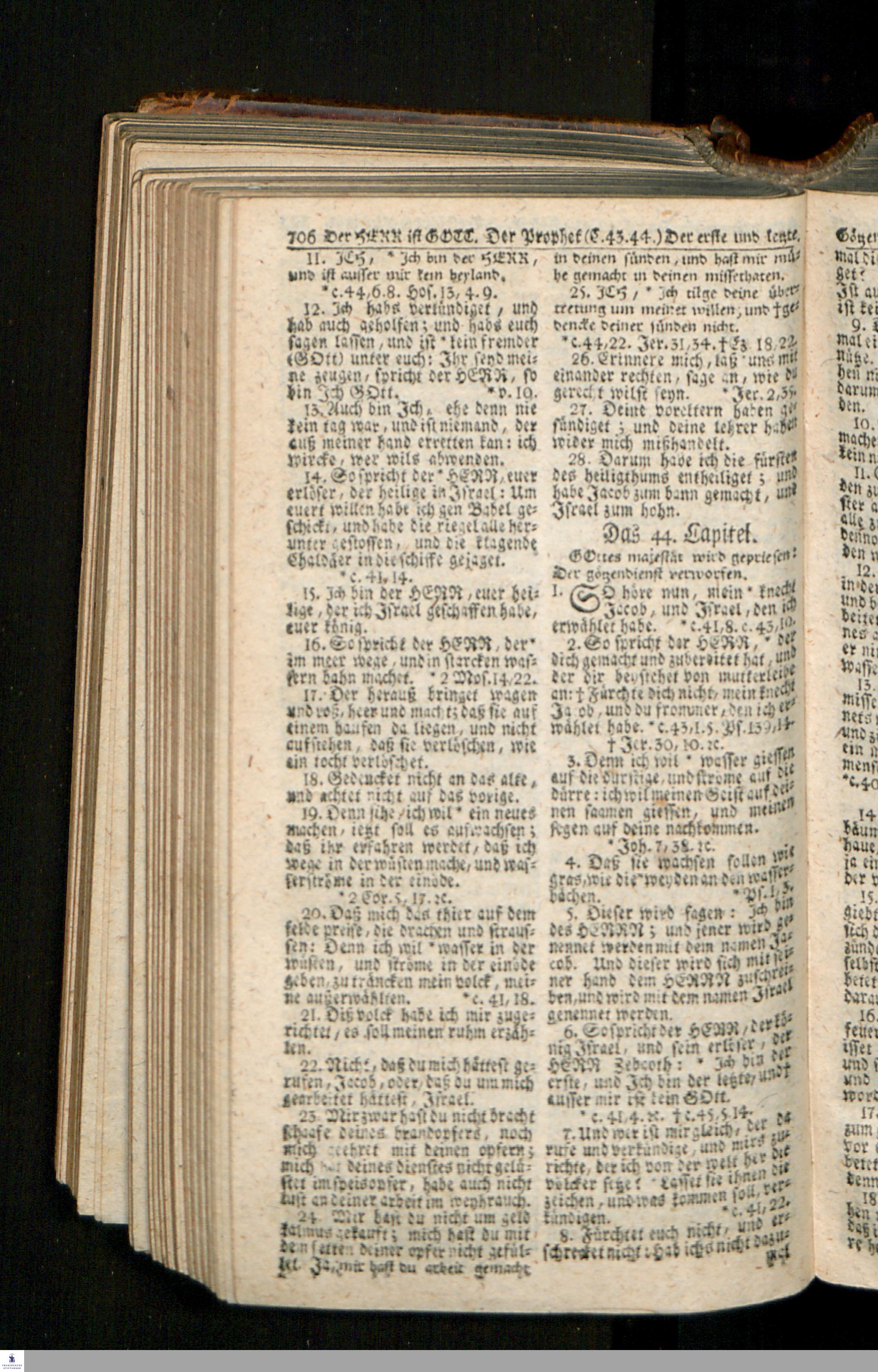 Biblia, Das ist: Die gantze Heil. Schrift Altes und Neues Testaments / Nach der Teutschen Ubersetzung D. Martin Luthers; Mit iedes Capitels kurtzen Summarien/ und nöthigsten Parallelen; Mit Fleiß übersehen, Und gegen einige/ sonderlich erstere/ Editiones des sel. Mannes gehalten, auch an unterschiedlichen Orten nach denselben eingerichtet, und von vielen in den bisherigen Exemplarien hin und wieder eingeschlichenen druckfehlern gesaubert. Nebst einer Vorrede Hn. Baron Carl Hildebrands v. Canstein.