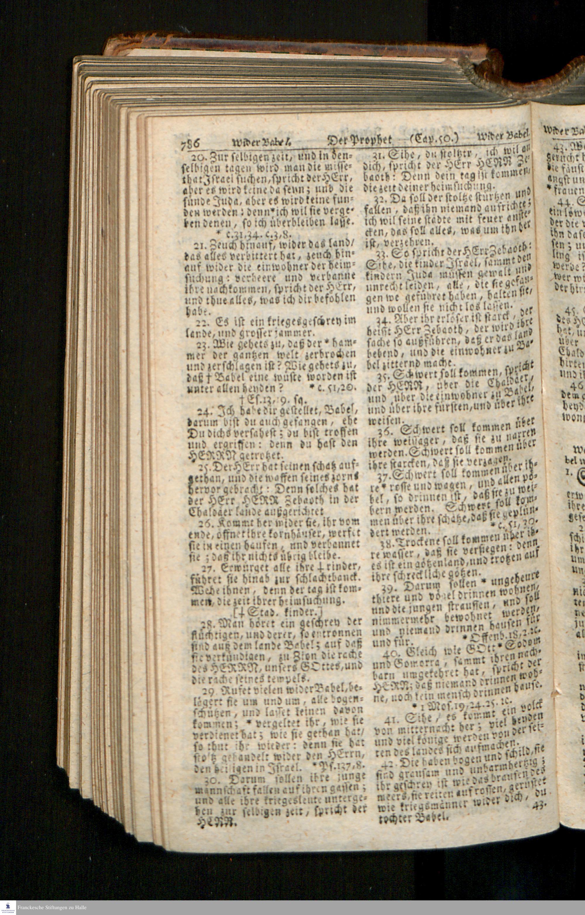Biblia, Das ist: Die gantze Heil. Schrift Altes und Neues Testaments / Nach der Teutschen Ubersetzung D. Martin Luthers; Mit iedes Capitels kurtzen Summarien/ und nöthigsten Parallelen; Mit Fleiß übersehen, Und gegen einige/ sonderlich erstere/ Editiones des sel. Mannes gehalten, auch an unterschiedlichen Orten nach denselben eingerichtet, und von vielen in den bisherigen Exemplarien hin und wieder eingeschlichenen druckfehlern gesaubert. Nebst einer Vorrede Hn. Baron Carl Hildebrands v. Canstein.
