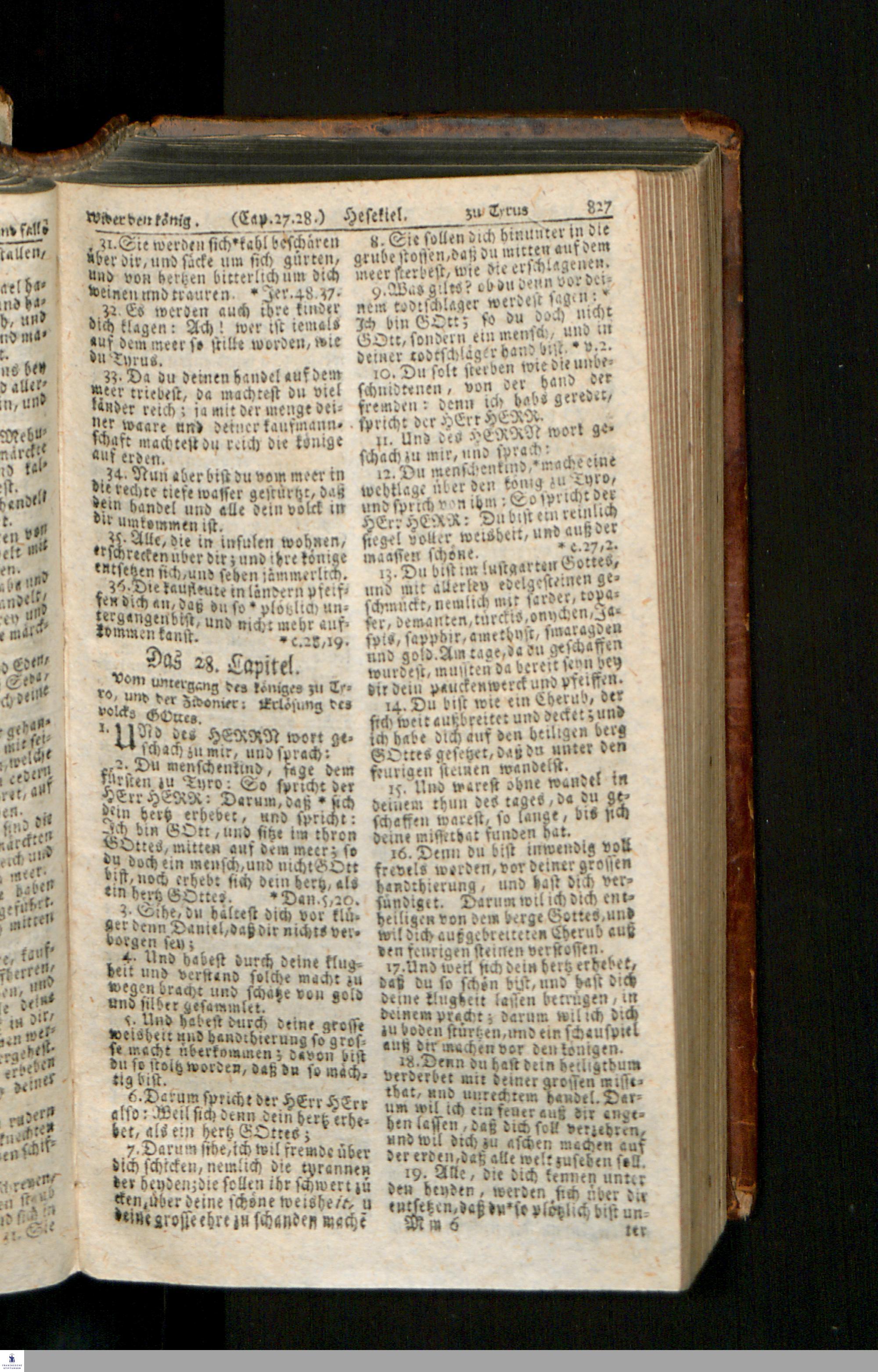 Biblia, Das ist: Die gantze Heil. Schrift Altes und Neues Testaments / Nach der Teutschen Ubersetzung D. Martin Luthers; Mit iedes Capitels kurtzen Summarien/ und nöthigsten Parallelen; Mit Fleiß übersehen, Und gegen einige/ sonderlich erstere/ Editiones des sel. Mannes gehalten, auch an unterschiedlichen Orten nach denselben eingerichtet, und von vielen in den bisherigen Exemplarien hin und wieder eingeschlichenen druckfehlern gesaubert. Nebst einer Vorrede Hn. Baron Carl Hildebrands v. Canstein.