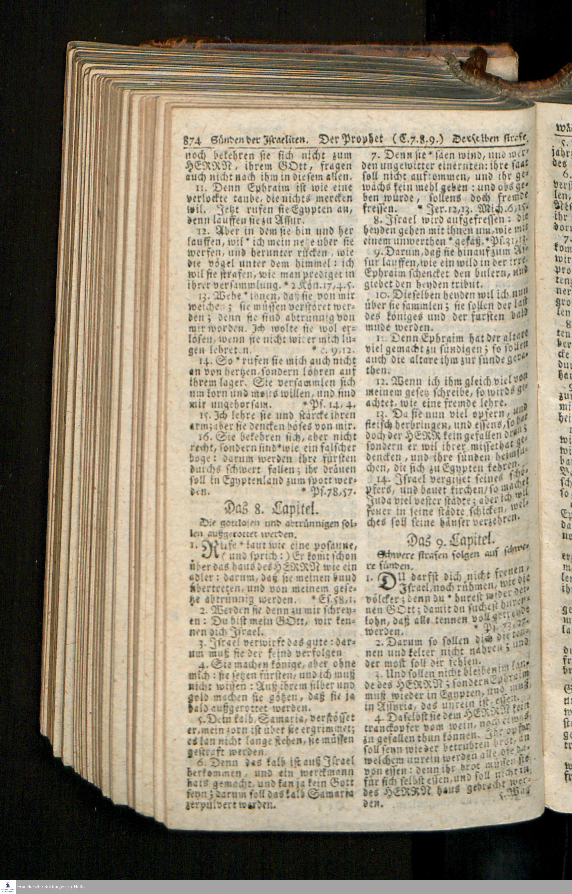 Biblia, Das ist: Die gantze Heil. Schrift Altes und Neues Testaments / Nach der Teutschen Ubersetzung D. Martin Luthers; Mit iedes Capitels kurtzen Summarien/ und nöthigsten Parallelen; Mit Fleiß übersehen, Und gegen einige/ sonderlich erstere/ Editiones des sel. Mannes gehalten, auch an unterschiedlichen Orten nach denselben eingerichtet, und von vielen in den bisherigen Exemplarien hin und wieder eingeschlichenen druckfehlern gesaubert. Nebst einer Vorrede Hn. Baron Carl Hildebrands v. Canstein.