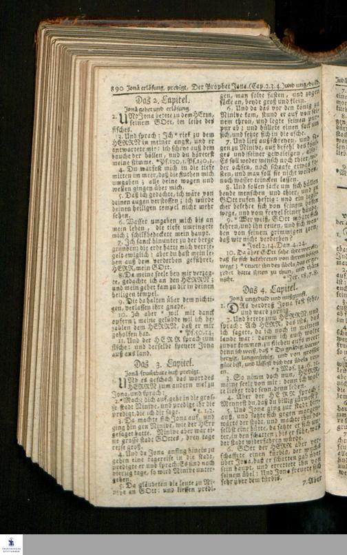 Biblia, Das ist: Die gantze Heil. Schrift Altes und Neues Testaments / Nach der Teutschen Ubersetzung D. Martin Luthers; Mit iedes Capitels kurtzen Summarien/ und nöthigsten Parallelen; Mit Fleiß übersehen, Und gegen einige/ sonderlich erstere/ Editiones des sel. Mannes gehalten, auch an unterschiedlichen Orten nach denselben eingerichtet, und von vielen in den bisherigen Exemplarien hin und wieder eingeschlichenen druckfehlern gesaubert. Nebst einer Vorrede Hn. Baron Carl Hildebrands v. Canstein.
