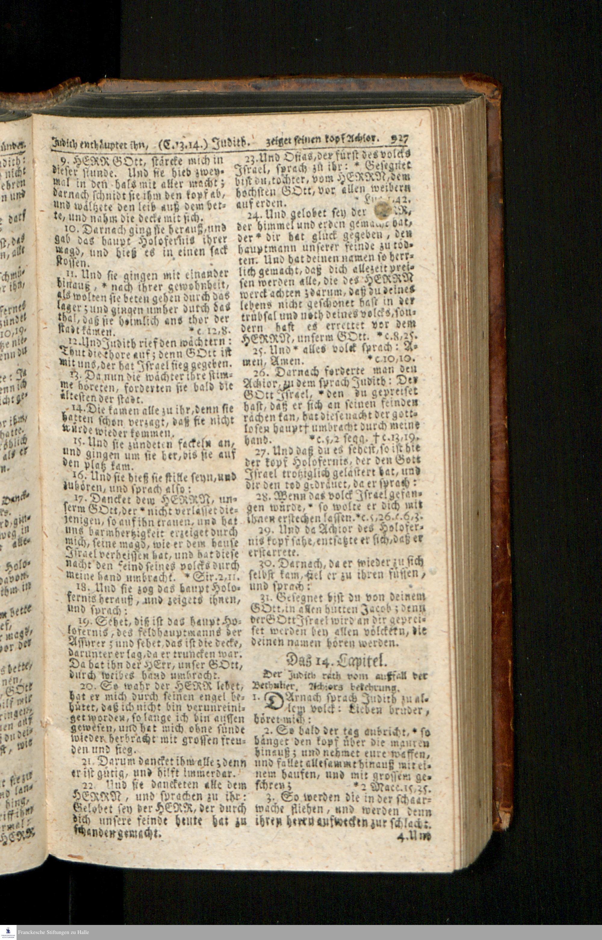 Biblia, Das ist: Die gantze Heil. Schrift Altes und Neues Testaments / Nach der Teutschen Ubersetzung D. Martin Luthers; Mit iedes Capitels kurtzen Summarien/ und nöthigsten Parallelen; Mit Fleiß übersehen, Und gegen einige/ sonderlich erstere/ Editiones des sel. Mannes gehalten, auch an unterschiedlichen Orten nach denselben eingerichtet, und von vielen in den bisherigen Exemplarien hin und wieder eingeschlichenen druckfehlern gesaubert. Nebst einer Vorrede Hn. Baron Carl Hildebrands v. Canstein.