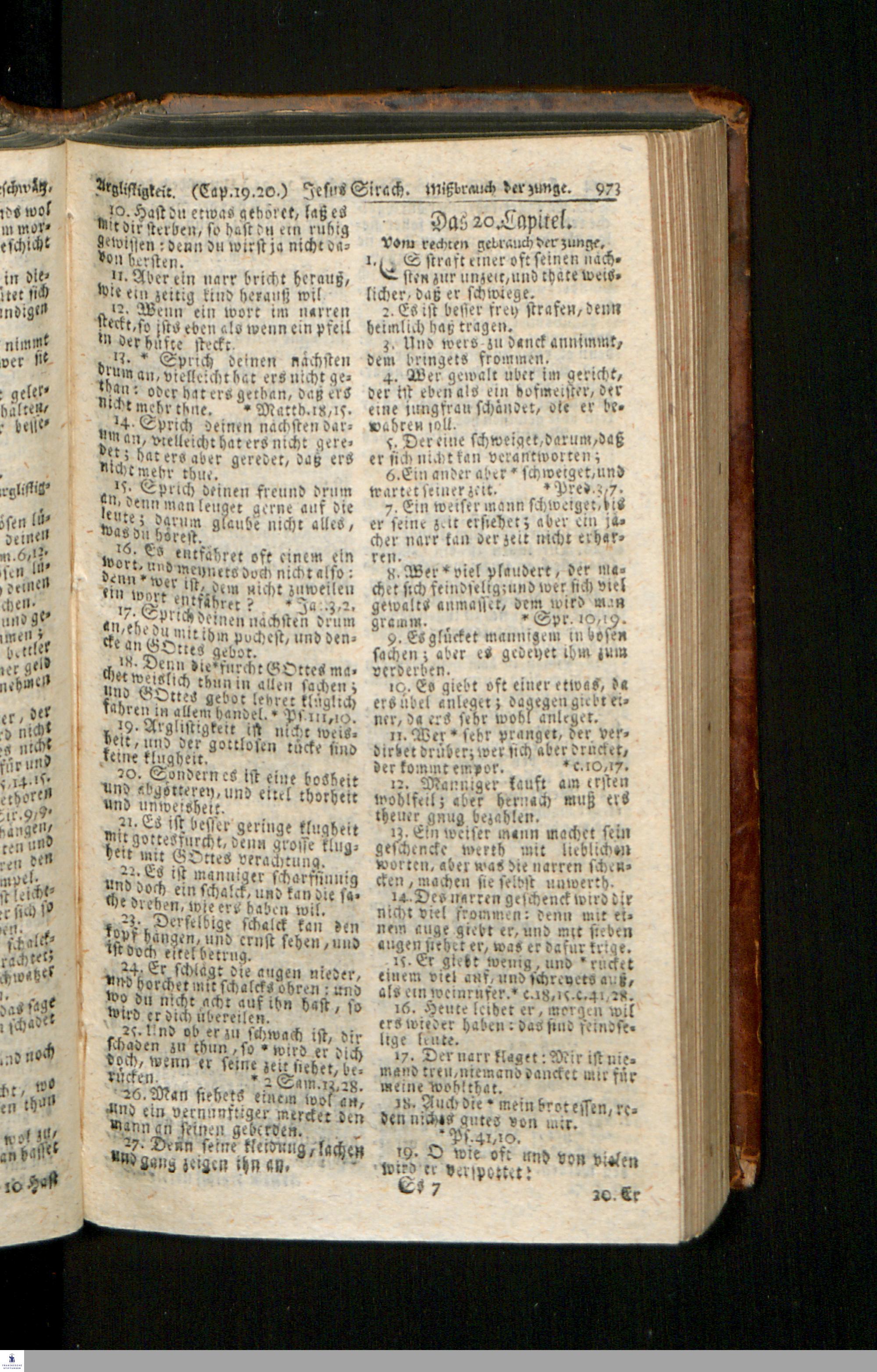 Biblia, Das ist: Die gantze Heil. Schrift Altes und Neues Testaments / Nach der Teutschen Ubersetzung D. Martin Luthers; Mit iedes Capitels kurtzen Summarien/ und nöthigsten Parallelen; Mit Fleiß übersehen, Und gegen einige/ sonderlich erstere/ Editiones des sel. Mannes gehalten, auch an unterschiedlichen Orten nach denselben eingerichtet, und von vielen in den bisherigen Exemplarien hin und wieder eingeschlichenen druckfehlern gesaubert. Nebst einer Vorrede Hn. Baron Carl Hildebrands v. Canstein.