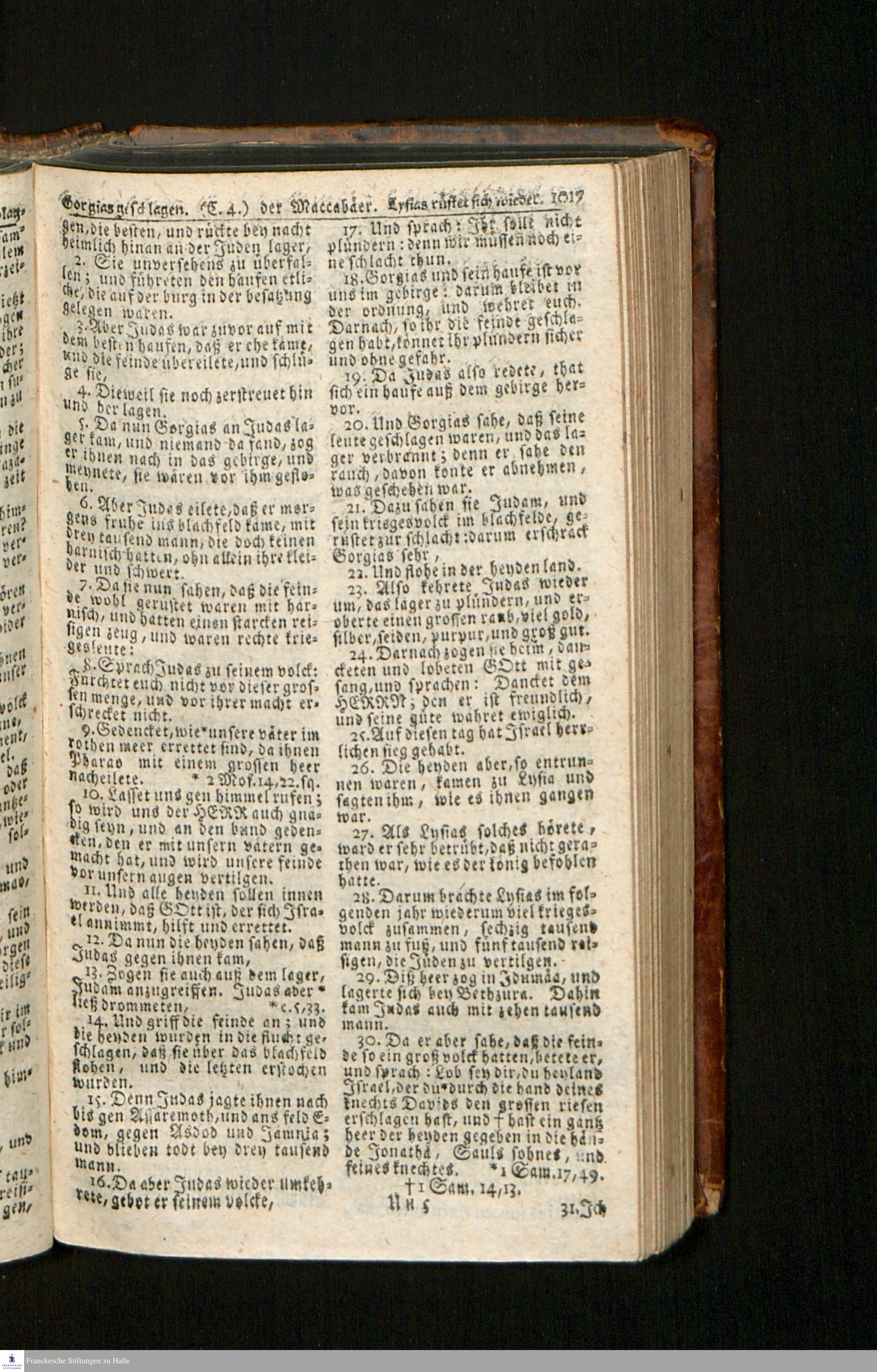 Biblia, Das ist: Die gantze Heil. Schrift Altes und Neues Testaments / Nach der Teutschen Ubersetzung D. Martin Luthers; Mit iedes Capitels kurtzen Summarien/ und nöthigsten Parallelen; Mit Fleiß übersehen, Und gegen einige/ sonderlich erstere/ Editiones des sel. Mannes gehalten, auch an unterschiedlichen Orten nach denselben eingerichtet, und von vielen in den bisherigen Exemplarien hin und wieder eingeschlichenen druckfehlern gesaubert. Nebst einer Vorrede Hn. Baron Carl Hildebrands v. Canstein.