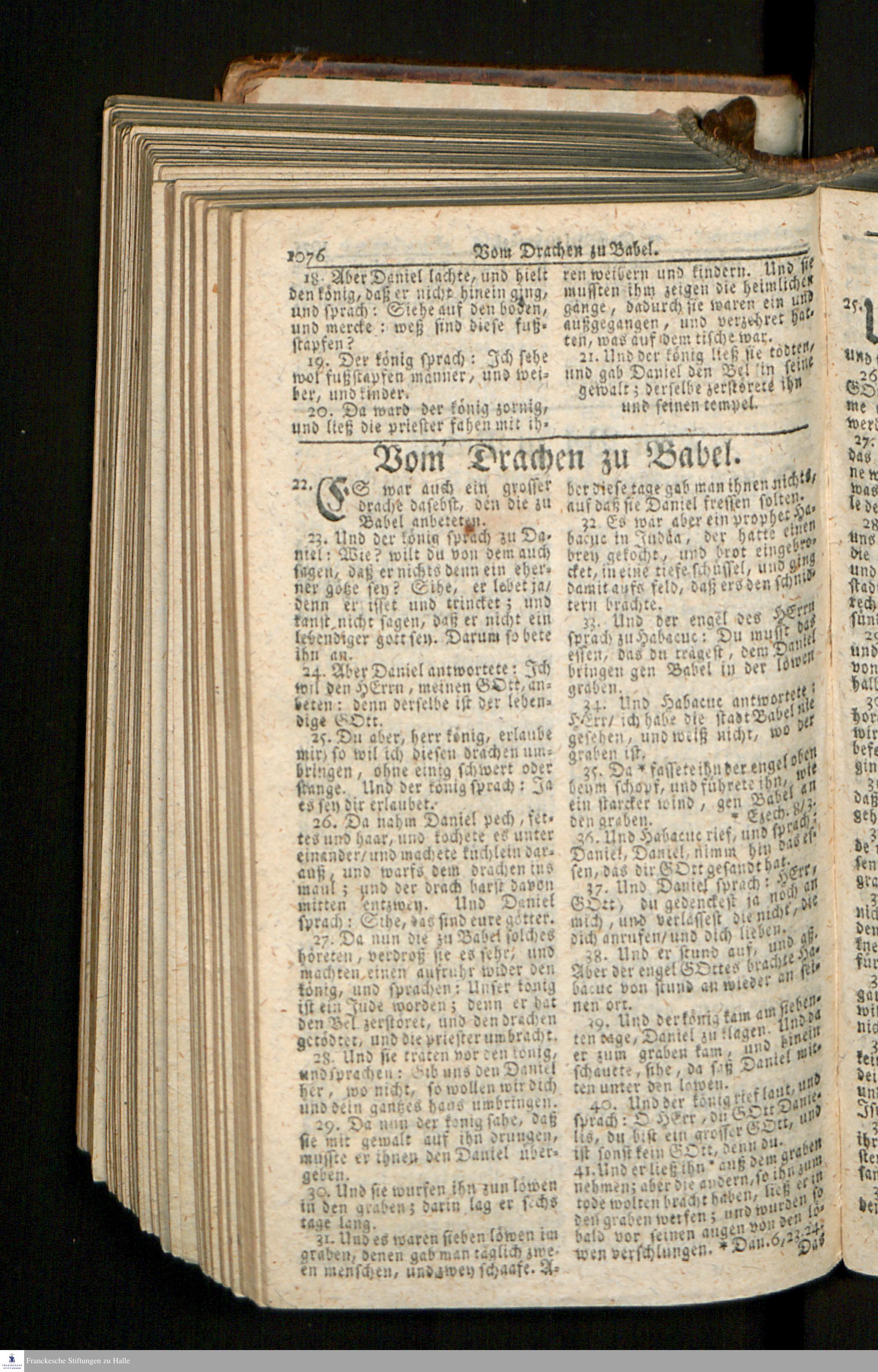 Biblia, Das ist: Die gantze Heil. Schrift Altes und Neues Testaments / Nach der Teutschen Ubersetzung D. Martin Luthers; Mit iedes Capitels kurtzen Summarien/ und nöthigsten Parallelen; Mit Fleiß übersehen, Und gegen einige/ sonderlich erstere/ Editiones des sel. Mannes gehalten, auch an unterschiedlichen Orten nach denselben eingerichtet, und von vielen in den bisherigen Exemplarien hin und wieder eingeschlichenen druckfehlern gesaubert. Nebst einer Vorrede Hn. Baron Carl Hildebrands v. Canstein.
