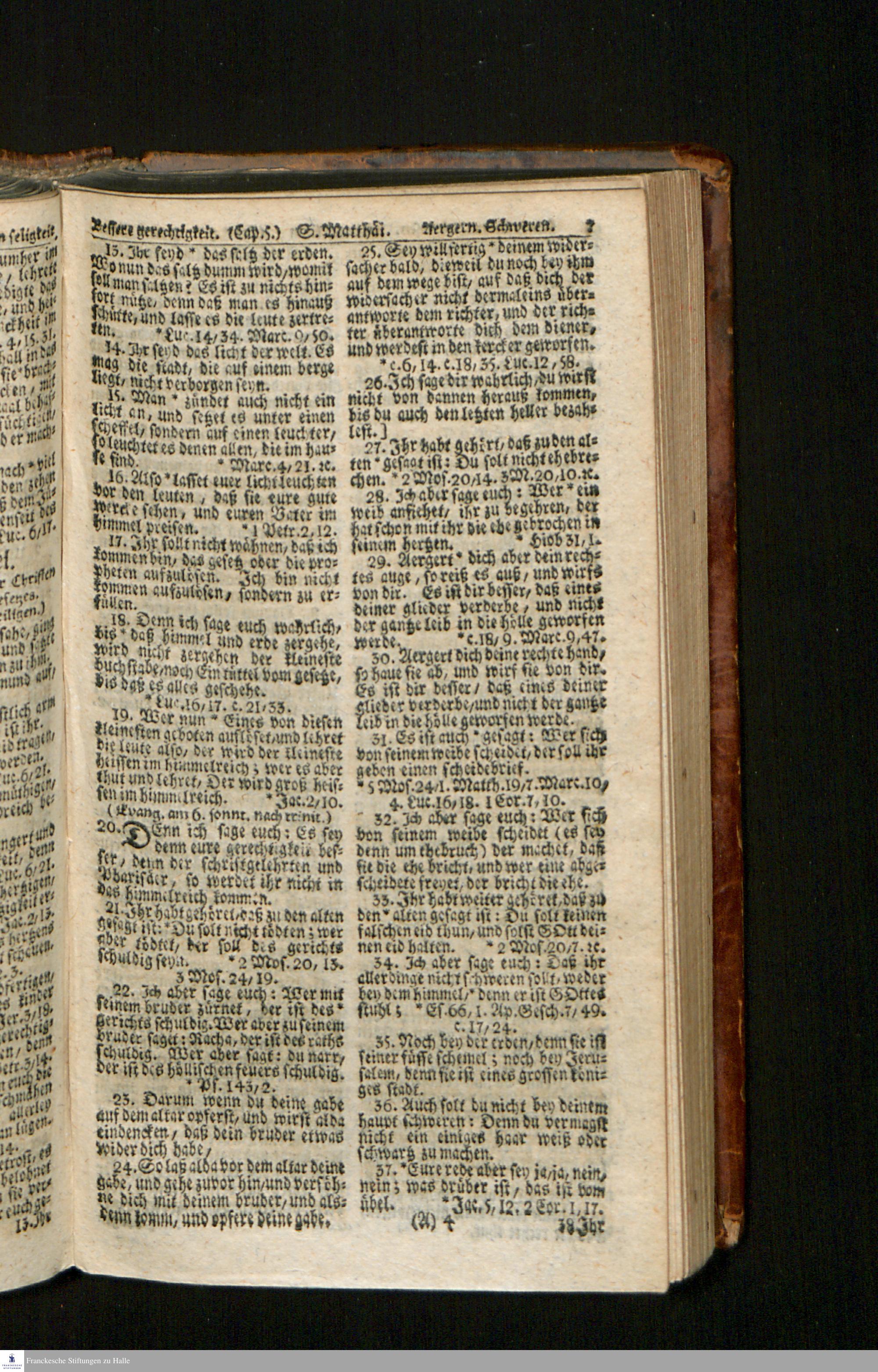 Biblia, Das ist: Die gantze Heil. Schrift Altes und Neues Testaments / Nach der Teutschen Ubersetzung D. Martin Luthers; Mit iedes Capitels kurtzen Summarien/ und nöthigsten Parallelen; Mit Fleiß übersehen, Und gegen einige/ sonderlich erstere/ Editiones des sel. Mannes gehalten, auch an unterschiedlichen Orten nach denselben eingerichtet, und von vielen in den bisherigen Exemplarien hin und wieder eingeschlichenen druckfehlern gesaubert. Nebst einer Vorrede Hn. Baron Carl Hildebrands v. Canstein.