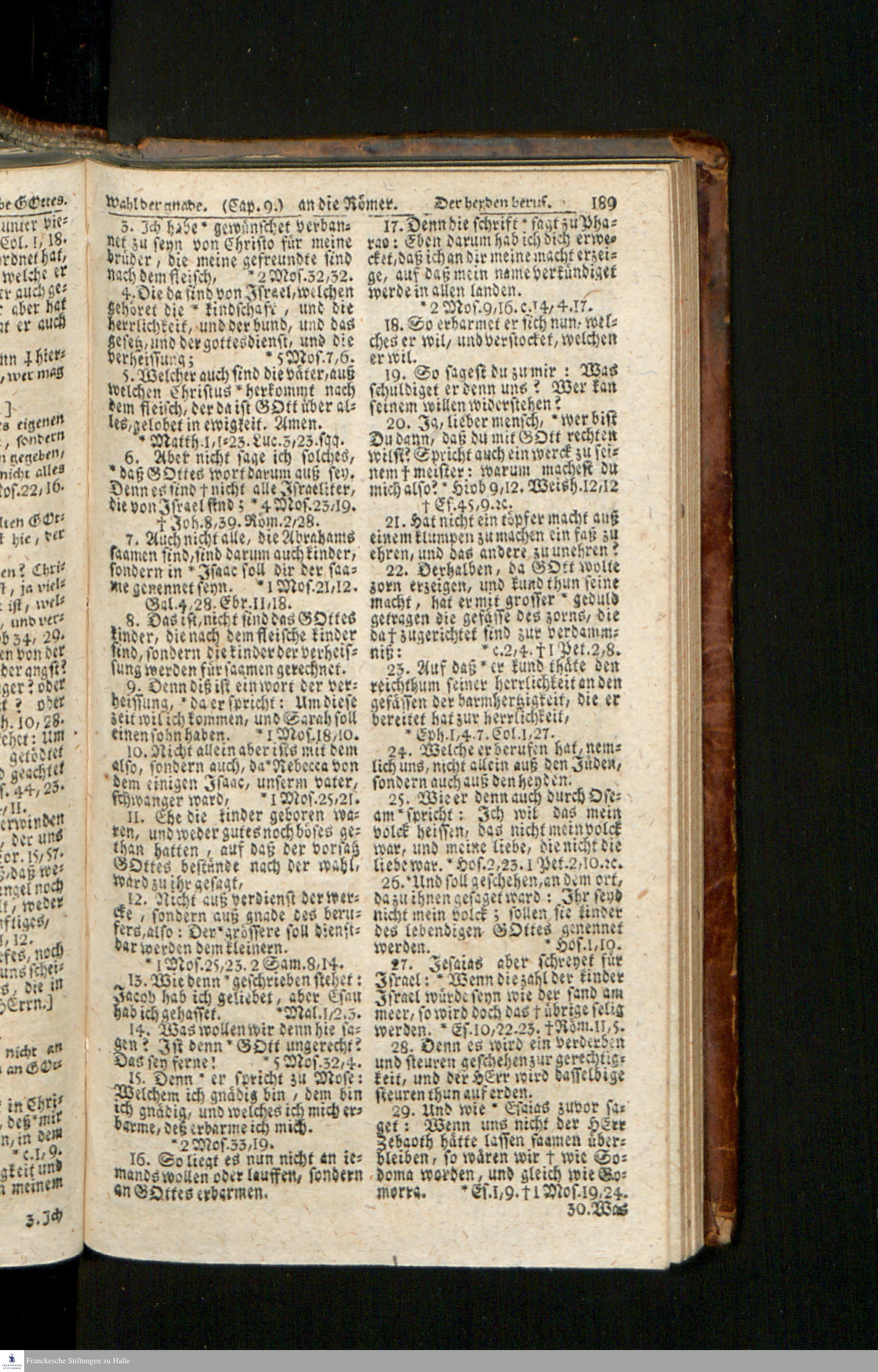 Biblia, Das ist: Die gantze Heil. Schrift Altes und Neues Testaments / Nach der Teutschen Ubersetzung D. Martin Luthers; Mit iedes Capitels kurtzen Summarien/ und nöthigsten Parallelen; Mit Fleiß übersehen, Und gegen einige/ sonderlich erstere/ Editiones des sel. Mannes gehalten, auch an unterschiedlichen Orten nach denselben eingerichtet, und von vielen in den bisherigen Exemplarien hin und wieder eingeschlichenen druckfehlern gesaubert. Nebst einer Vorrede Hn. Baron Carl Hildebrands v. Canstein.