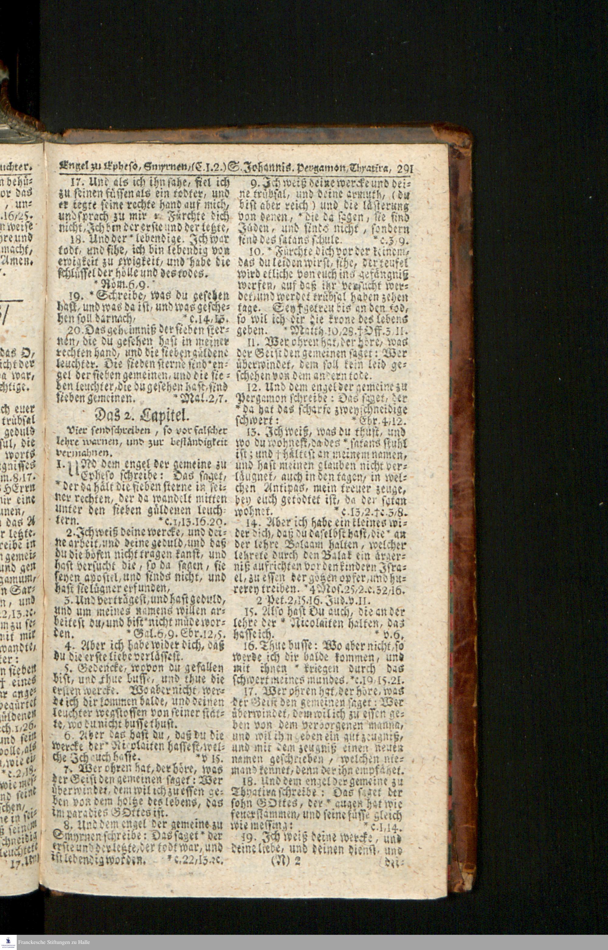 Biblia, Das ist: Die gantze Heil. Schrift Altes und Neues Testaments / Nach der Teutschen Ubersetzung D. Martin Luthers; Mit iedes Capitels kurtzen Summarien/ und nöthigsten Parallelen; Mit Fleiß übersehen, Und gegen einige/ sonderlich erstere/ Editiones des sel. Mannes gehalten, auch an unterschiedlichen Orten nach denselben eingerichtet, und von vielen in den bisherigen Exemplarien hin und wieder eingeschlichenen druckfehlern gesaubert. Nebst einer Vorrede Hn. Baron Carl Hildebrands v. Canstein.