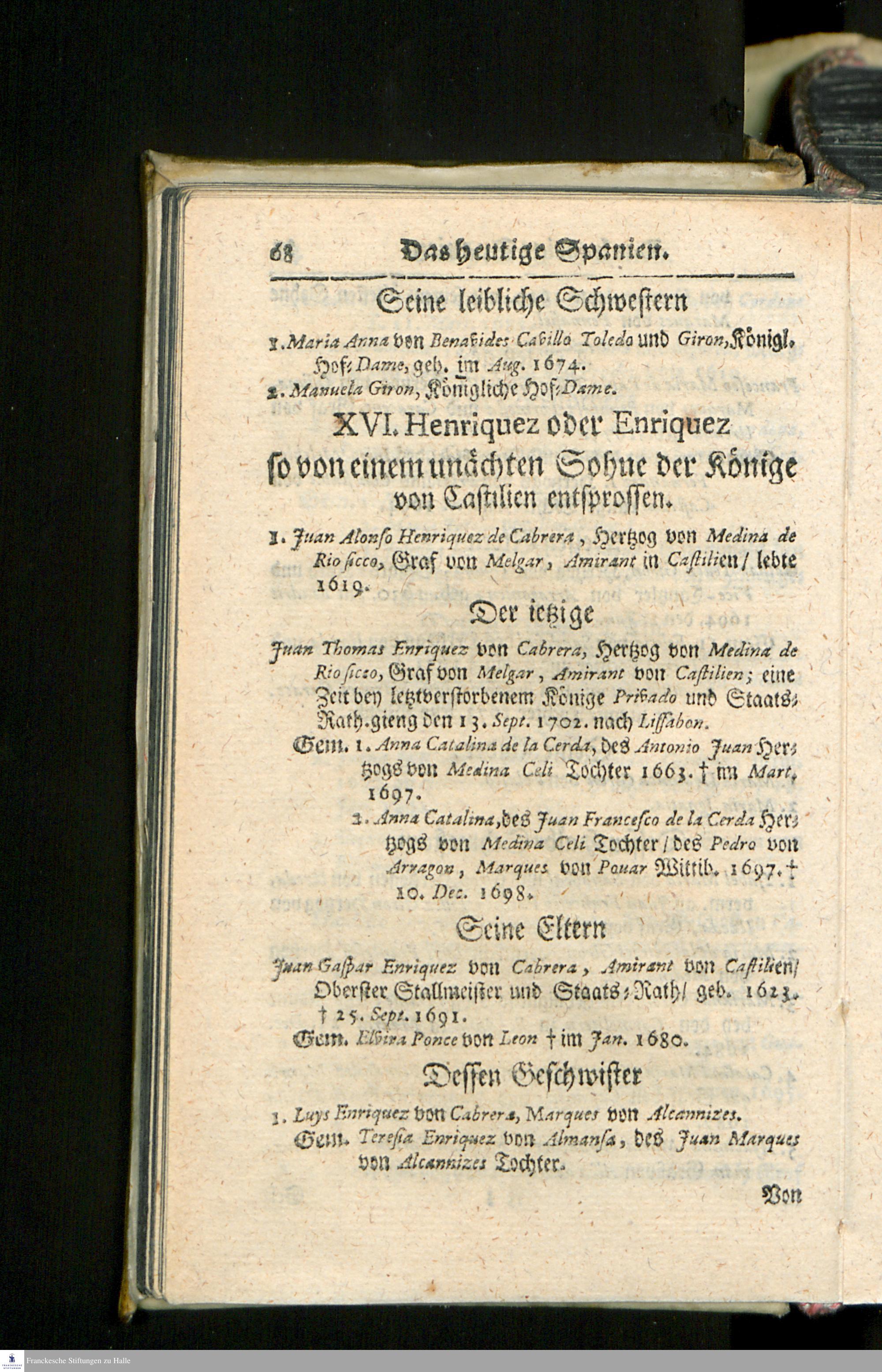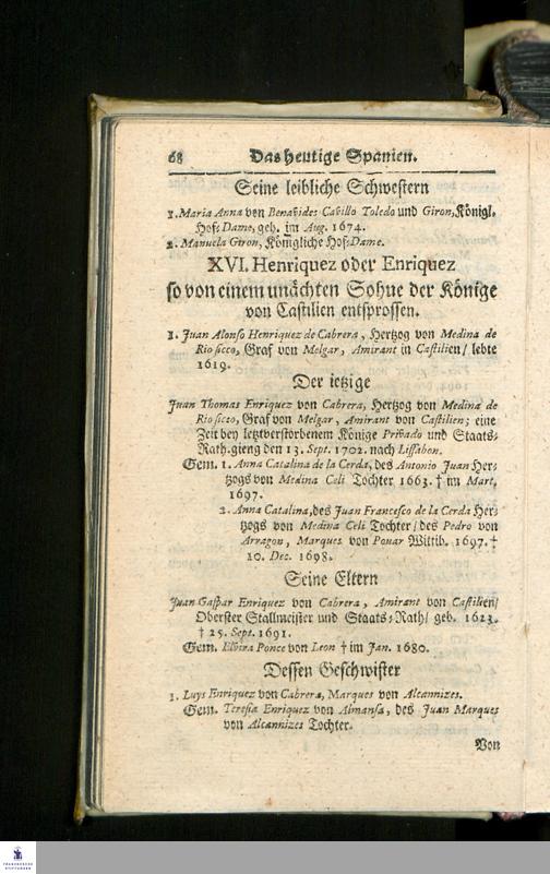 Die heutigen Christlichen Souverainen Von Europa, Das ist: Ein kurtzer Genealogischer und Politischer Abriß/ : Darinnen des Heil. Röm. Reiches/ aller Königreiche/ Staaten und Souverainen Fürsten von Europa Historische Haupt-Periodi, ... : Nebst ieden Landes angehengten berühmten Familien, Ritter-Orden/ Societeten und hin und wieder subsistirenden Gesandten/ nach Geographischer Ordnung vorgestellet worden/ ...