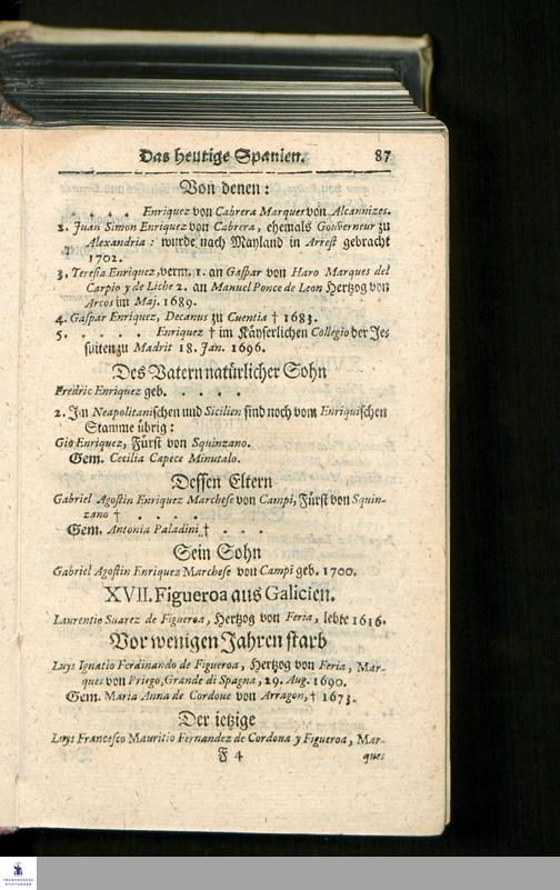 Die heutigen Christlichen Souverainen Von Europa, Das ist: Ein kurtzer Genealogischer und Politischer Abriß/ : Darinnen des Heil. Röm. Reiches/ aller Königreiche/ Staaten und Souverainen Fürsten von Europa Historische Haupt-Periodi, ... : Nebst ieden Landes angehengten berühmten Familien, Ritter-Orden/ Societeten und hin und wieder subsistirenden Gesandten/ nach Geographischer Ordnung vorgestellet worden/ ...