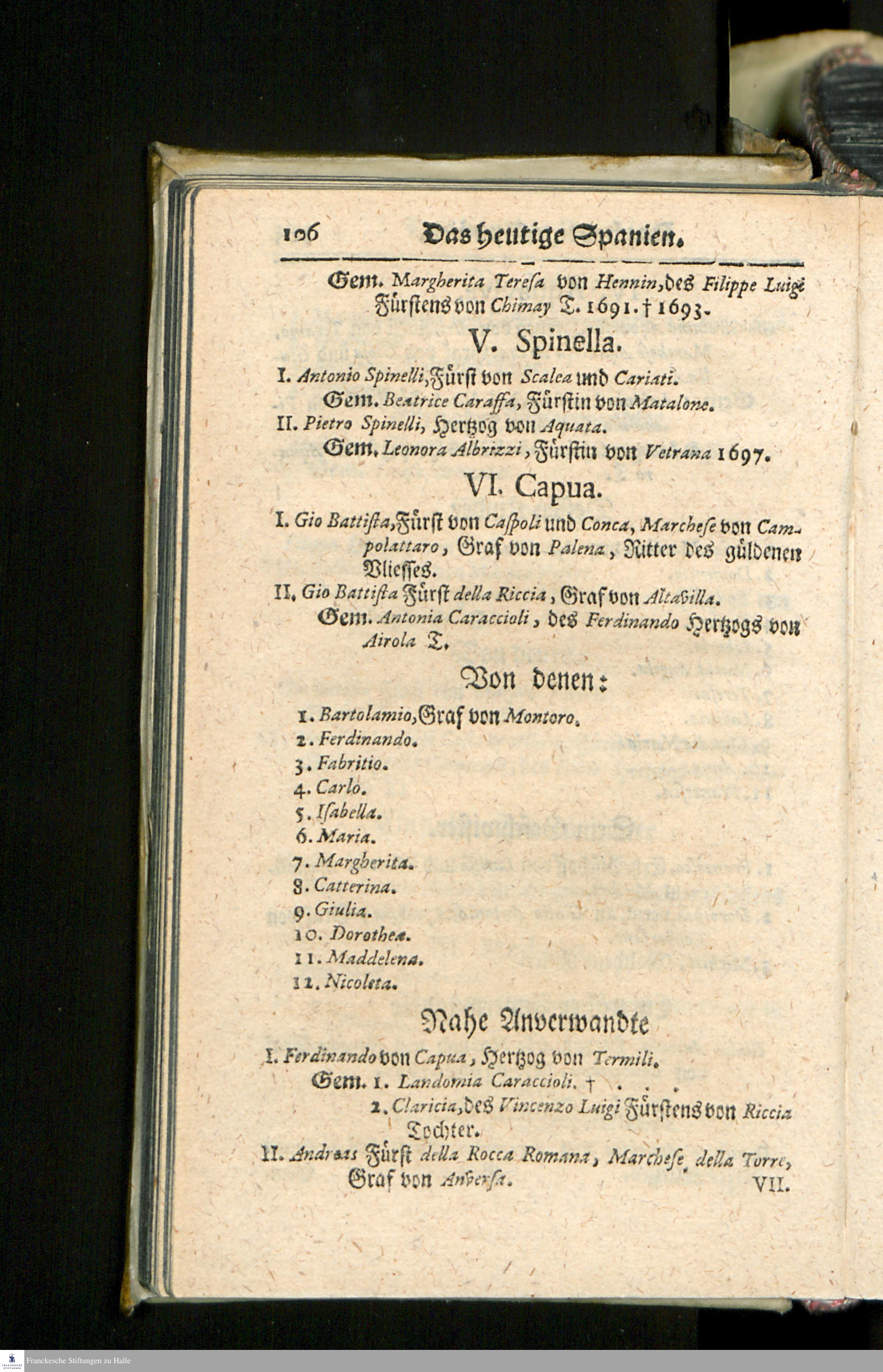 Die heutigen Christlichen Souverainen Von Europa, Das ist: Ein kurtzer Genealogischer und Politischer Abriß/ : Darinnen des Heil. Röm. Reiches/ aller Königreiche/ Staaten und Souverainen Fürsten von Europa Historische Haupt-Periodi, ... : Nebst ieden Landes angehengten berühmten Familien, Ritter-Orden/ Societeten und hin und wieder subsistirenden Gesandten/ nach Geographischer Ordnung vorgestellet worden/ ...