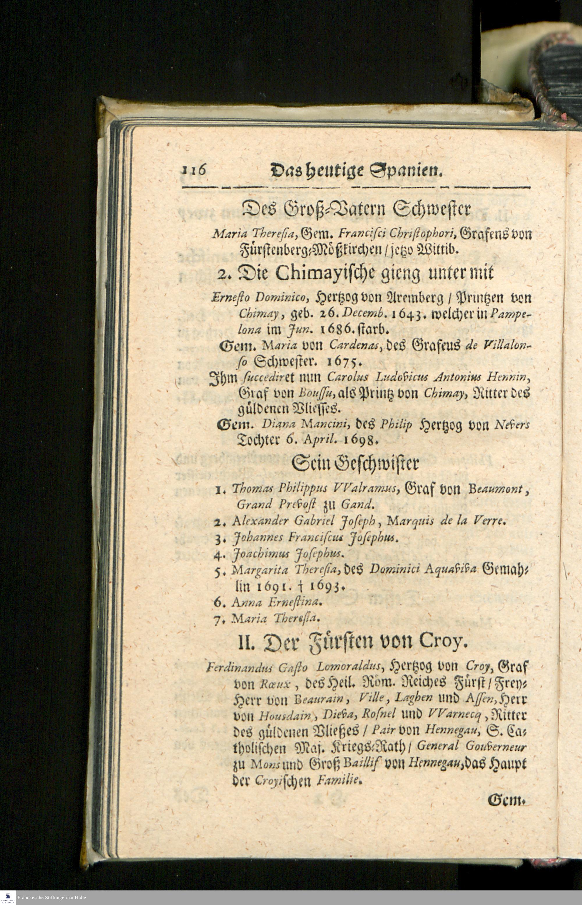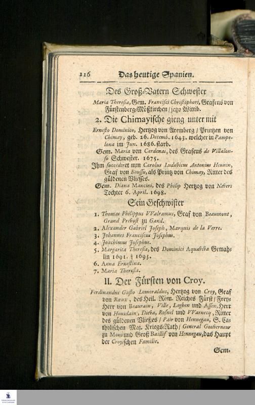 Die heutigen Christlichen Souverainen Von Europa, Das ist: Ein kurtzer Genealogischer und Politischer Abriß/ : Darinnen des Heil. Röm. Reiches/ aller Königreiche/ Staaten und Souverainen Fürsten von Europa Historische Haupt-Periodi, ... : Nebst ieden Landes angehengten berühmten Familien, Ritter-Orden/ Societeten und hin und wieder subsistirenden Gesandten/ nach Geographischer Ordnung vorgestellet worden/ ...