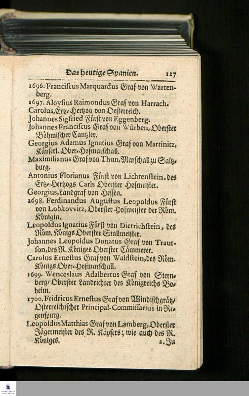 Die heutigen Christlichen Souverainen Von Europa, Das ist: Ein kurtzer Genealogischer und Politischer Abriß/ : Darinnen des Heil. Röm. Reiches/ aller Königreiche/ Staaten und Souverainen Fürsten von Europa Historische Haupt-Periodi, ... : Nebst ieden Landes angehengten berühmten Familien, Ritter-Orden/ Societeten und hin und wieder subsistirenden Gesandten/ nach Geographischer Ordnung vorgestellet worden/ ...