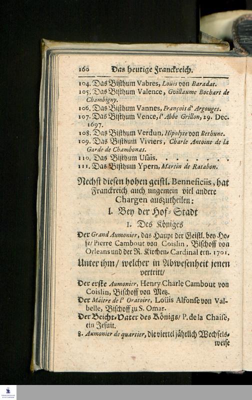 Die heutigen Christlichen Souverainen Von Europa, Das ist: Ein kurtzer Genealogischer und Politischer Abriß/ : Darinnen des Heil. Röm. Reiches/ aller Königreiche/ Staaten und Souverainen Fürsten von Europa Historische Haupt-Periodi, ... : Nebst ieden Landes angehengten berühmten Familien, Ritter-Orden/ Societeten und hin und wieder subsistirenden Gesandten/ nach Geographischer Ordnung vorgestellet worden/ ...
