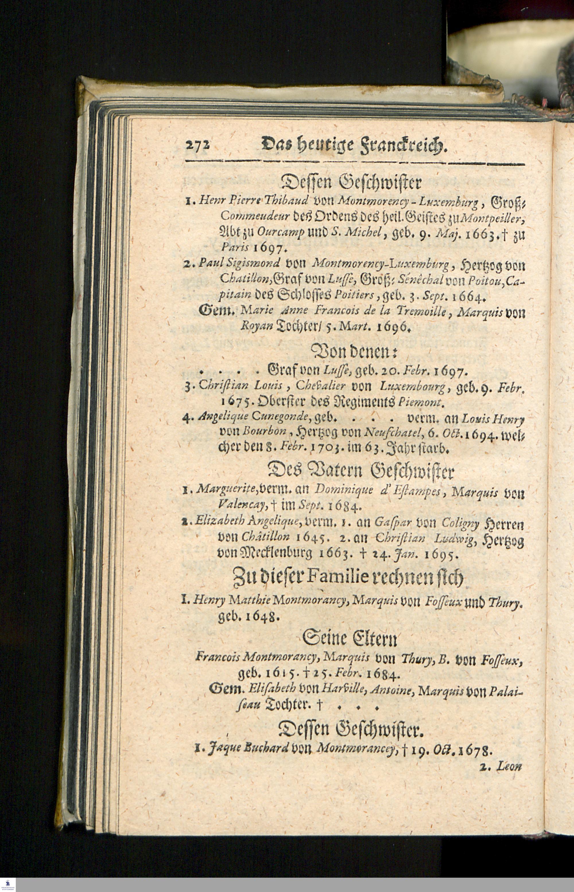 Die heutigen Christlichen Souverainen Von Europa, Das ist: Ein kurtzer Genealogischer und Politischer Abriß/ : Darinnen des Heil. Röm. Reiches/ aller Königreiche/ Staaten und Souverainen Fürsten von Europa Historische Haupt-Periodi, ... : Nebst ieden Landes angehengten berühmten Familien, Ritter-Orden/ Societeten und hin und wieder subsistirenden Gesandten/ nach Geographischer Ordnung vorgestellet worden/ ...
