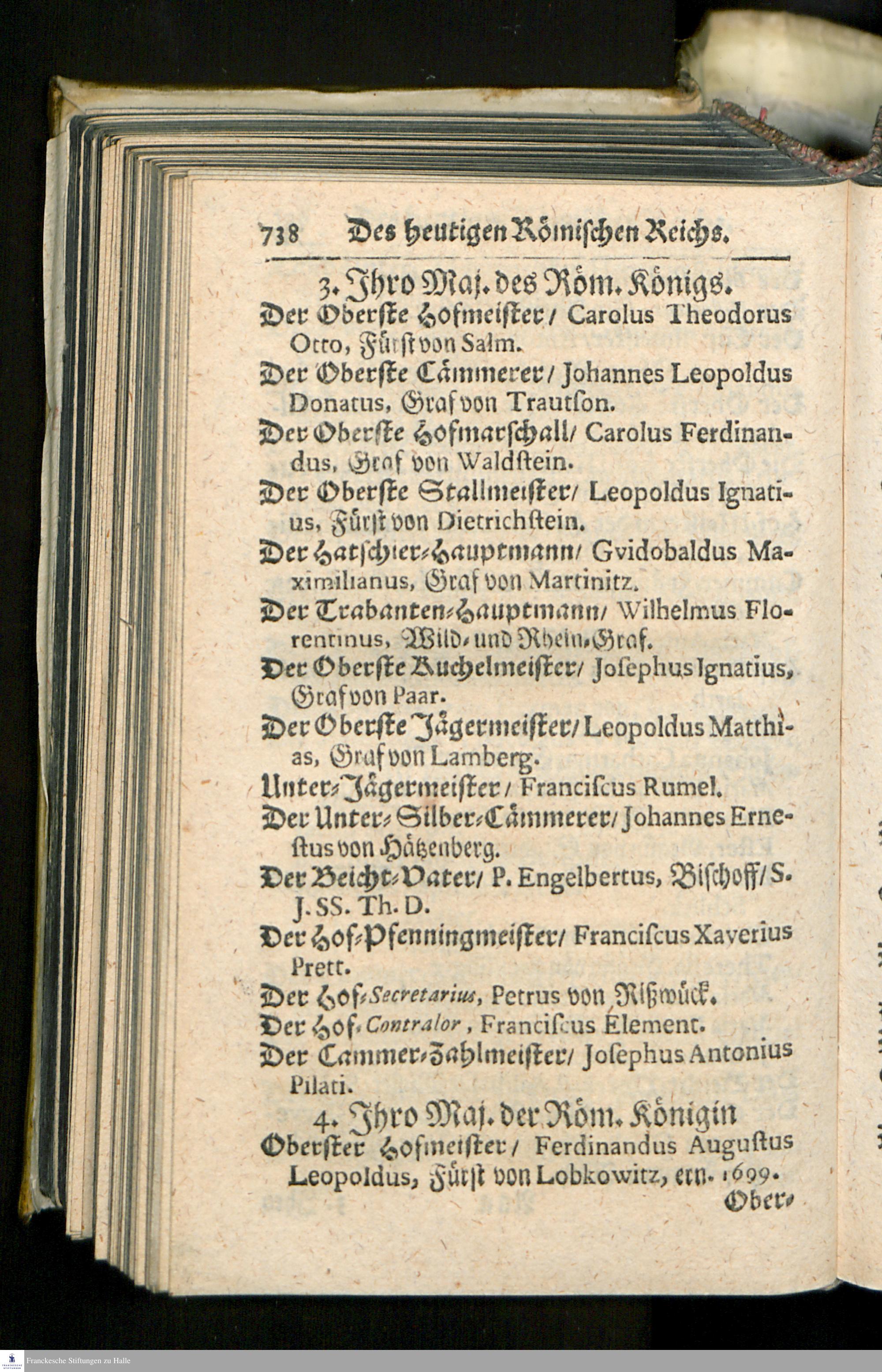 Die heutigen Christlichen Souverainen Von Europa, Das ist: Ein kurtzer Genealogischer und Politischer Abriß/ : Darinnen des Heil. Röm. Reiches/ aller Königreiche/ Staaten und Souverainen Fürsten von Europa Historische Haupt-Periodi, ... : Nebst ieden Landes angehengten berühmten Familien, Ritter-Orden/ Societeten und hin und wieder subsistirenden Gesandten/ nach Geographischer Ordnung vorgestellet worden/ ...