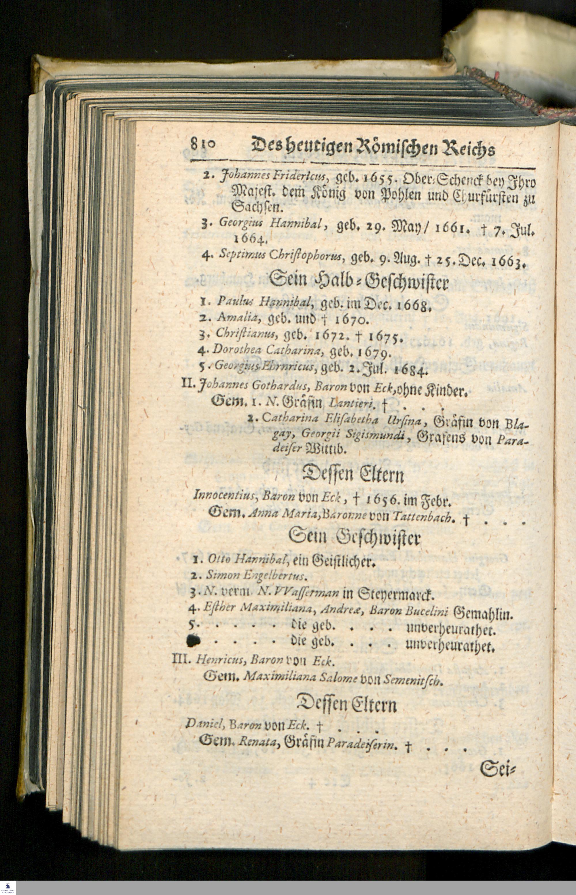 Die heutigen Christlichen Souverainen Von Europa, Das ist: Ein kurtzer Genealogischer und Politischer Abriß/ : Darinnen des Heil. Röm. Reiches/ aller Königreiche/ Staaten und Souverainen Fürsten von Europa Historische Haupt-Periodi, ... : Nebst ieden Landes angehengten berühmten Familien, Ritter-Orden/ Societeten und hin und wieder subsistirenden Gesandten/ nach Geographischer Ordnung vorgestellet worden/ ...