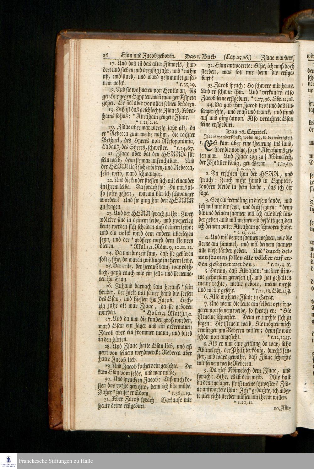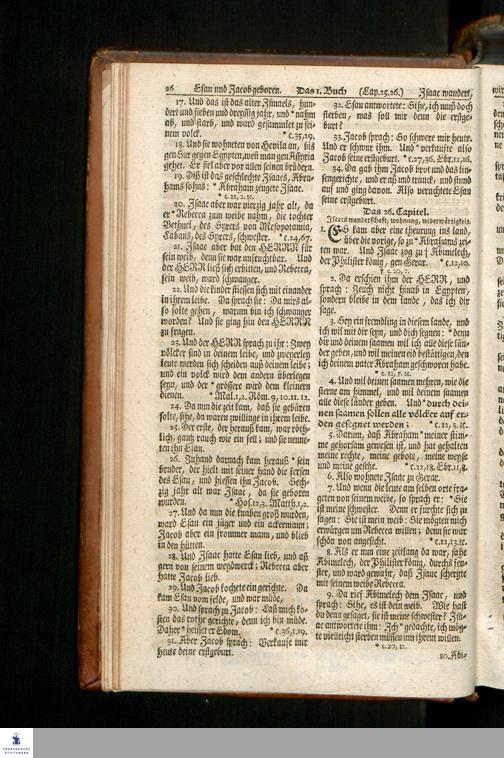 Biblia, Das ist: Die gantze Heil. Schrift Altes und Neues Testaments / Nach der Teutschen Ubersetzung D. Martin Luthers; Mit iedes Capitels kurtzen Summarien, auch beygefügten vielen und richtigen Parallelen; Mit fleiß übersehen/ und gegen einige/ sonderlich erstere/ Editiones des sel. Mannes gehalten, auch an unterschiedlichen Orten nach denselben eingerichtet, und von vielen in den bisherigen Exemplarien hin und wieder eingeschlichenen Fehlern gesaubert. Nebst einer Vorrede Herrn Baron Carl Hildebrands von Canstein