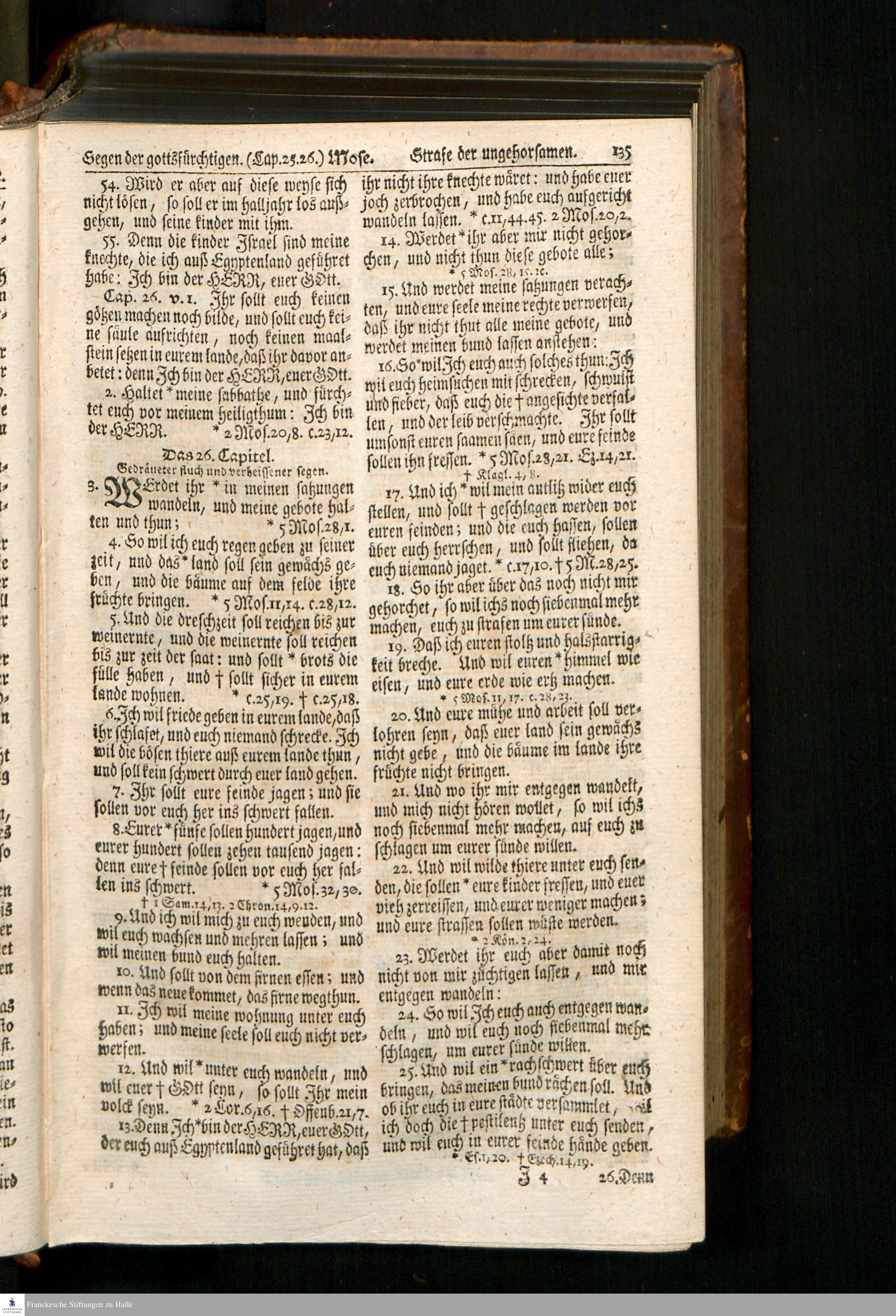 Biblia, Das ist: Die gantze Heil. Schrift Altes und Neues Testaments / Nach der Teutschen Ubersetzung D. Martin Luthers; Mit iedes Capitels kurtzen Summarien, auch beygefügten vielen und richtigen Parallelen; Mit fleiß übersehen/ und gegen einige/ sonderlich erstere/ Editiones des sel. Mannes gehalten, auch an unterschiedlichen Orten nach denselben eingerichtet, und von vielen in den bisherigen Exemplarien hin und wieder eingeschlichenen Fehlern gesaubert. Nebst einer Vorrede Herrn Baron Carl Hildebrands von Canstein