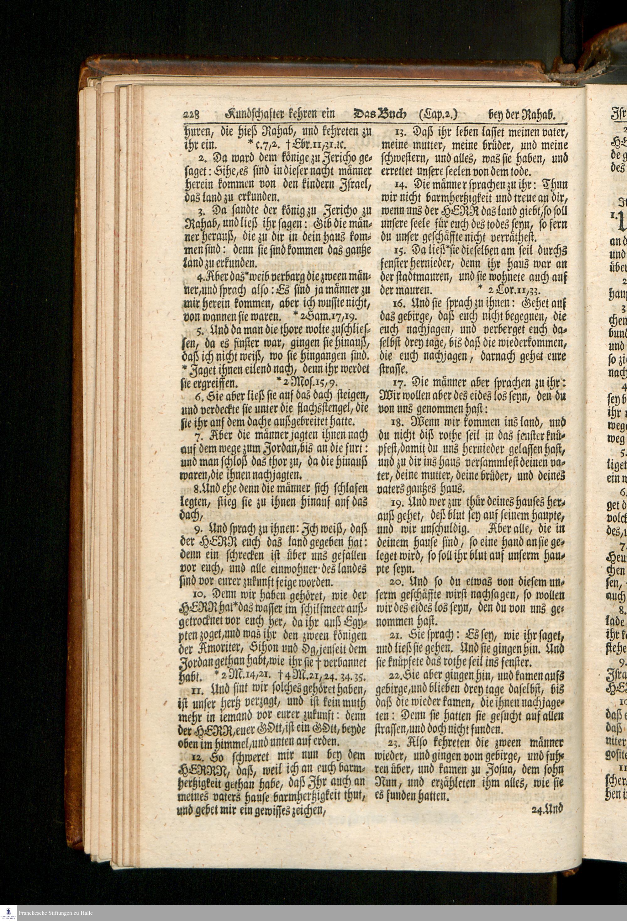 Biblia, Das ist: Die gantze Heil. Schrift Altes und Neues Testaments / Nach der Teutschen Ubersetzung D. Martin Luthers; Mit iedes Capitels kurtzen Summarien, auch beygefügten vielen und richtigen Parallelen; Mit fleiß übersehen/ und gegen einige/ sonderlich erstere/ Editiones des sel. Mannes gehalten, auch an unterschiedlichen Orten nach denselben eingerichtet, und von vielen in den bisherigen Exemplarien hin und wieder eingeschlichenen Fehlern gesaubert. Nebst einer Vorrede Herrn Baron Carl Hildebrands von Canstein