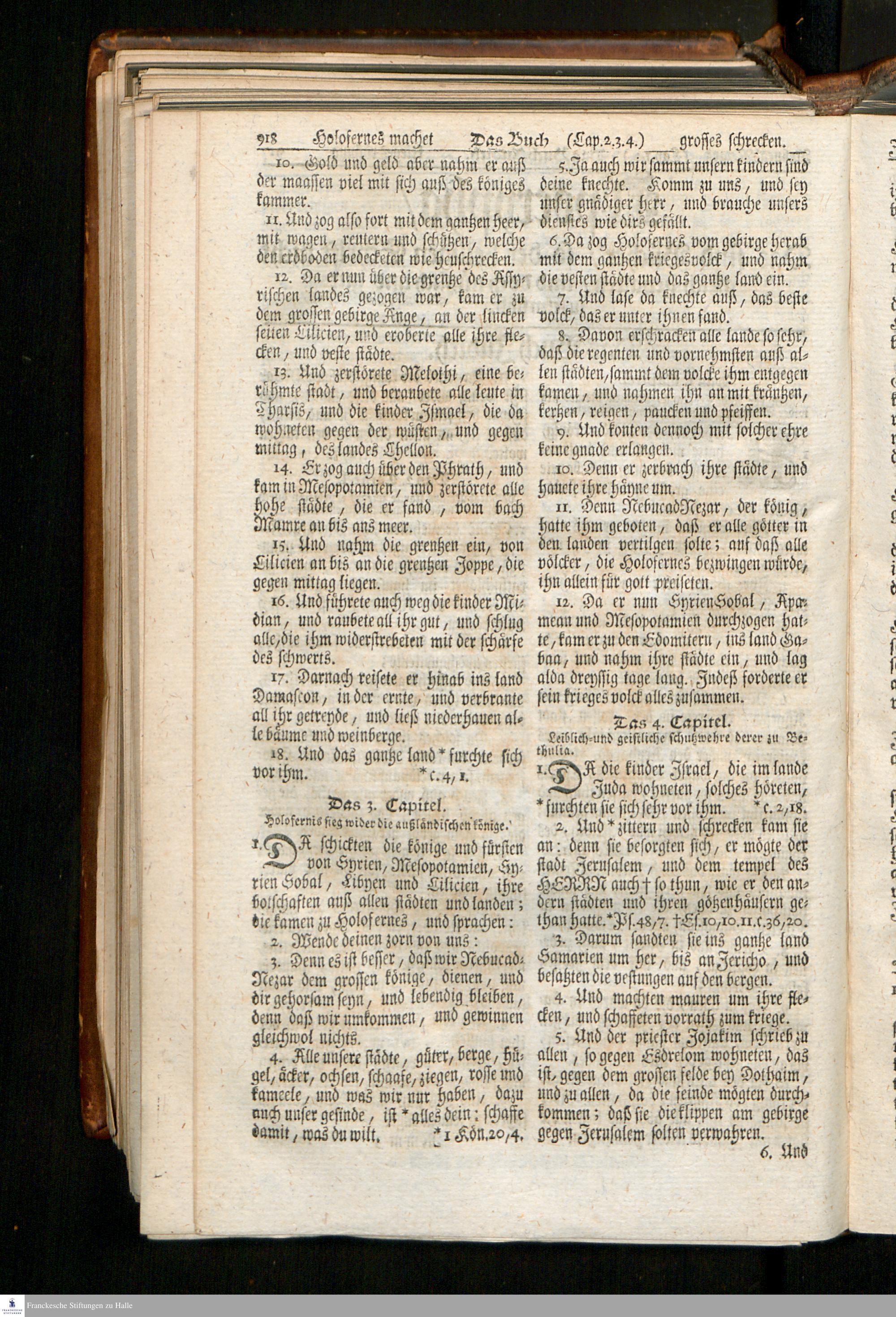 Biblia, Das ist: Die gantze Heil. Schrift Altes und Neues Testaments / Nach der Teutschen Ubersetzung D. Martin Luthers; Mit iedes Capitels kurtzen Summarien, auch beygefügten vielen und richtigen Parallelen; Mit fleiß übersehen/ und gegen einige/ sonderlich erstere/ Editiones des sel. Mannes gehalten, auch an unterschiedlichen Orten nach denselben eingerichtet, und von vielen in den bisherigen Exemplarien hin und wieder eingeschlichenen Fehlern gesaubert. Nebst einer Vorrede Herrn Baron Carl Hildebrands von Canstein