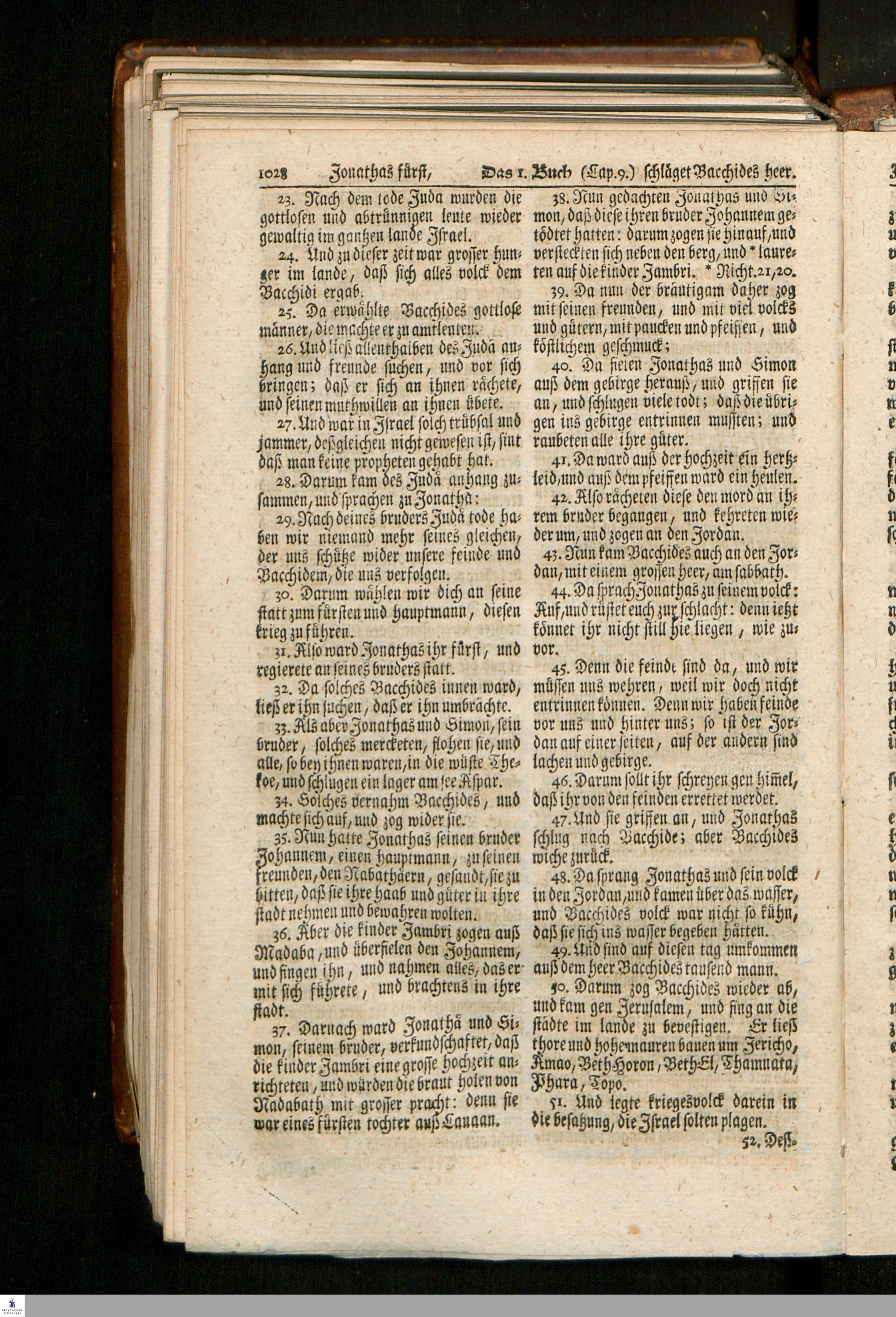 Biblia, Das ist: Die gantze Heil. Schrift Altes und Neues Testaments / Nach der Teutschen Ubersetzung D. Martin Luthers; Mit iedes Capitels kurtzen Summarien, auch beygefügten vielen und richtigen Parallelen; Mit fleiß übersehen/ und gegen einige/ sonderlich erstere/ Editiones des sel. Mannes gehalten, auch an unterschiedlichen Orten nach denselben eingerichtet, und von vielen in den bisherigen Exemplarien hin und wieder eingeschlichenen Fehlern gesaubert. Nebst einer Vorrede Herrn Baron Carl Hildebrands von Canstein